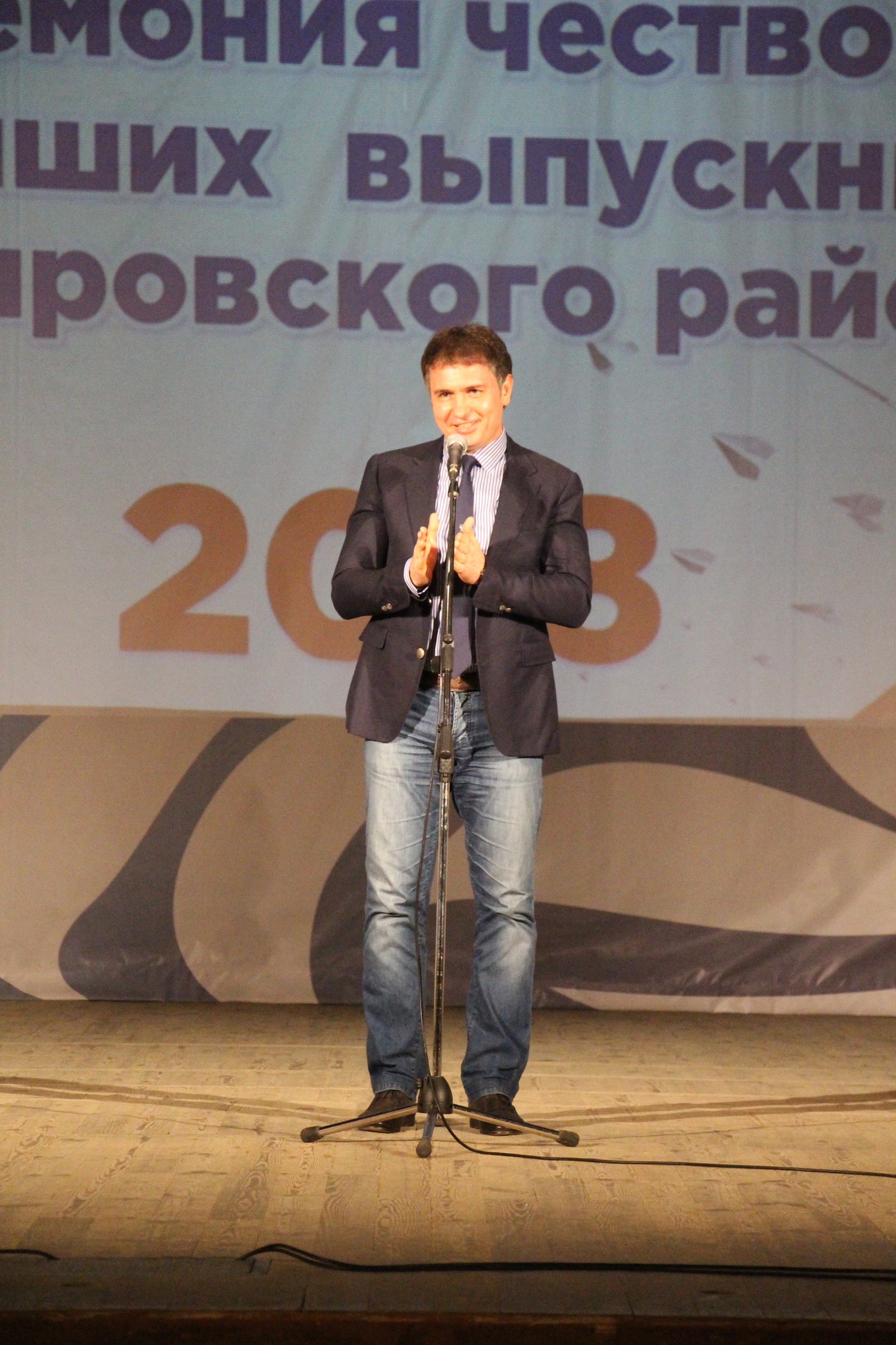 Ребят поздравили со сцены председатель Совета депутатов г. Новосибирска Дмитрий Владимирович Асанцев, глава администрации Кировского района Андрей Александрович Гончаров, начальник отдела образования Игорь Владимирович Тимошенко и директор развлекательного центра «Sky city» Дмитрий Алексеевич Дугин.