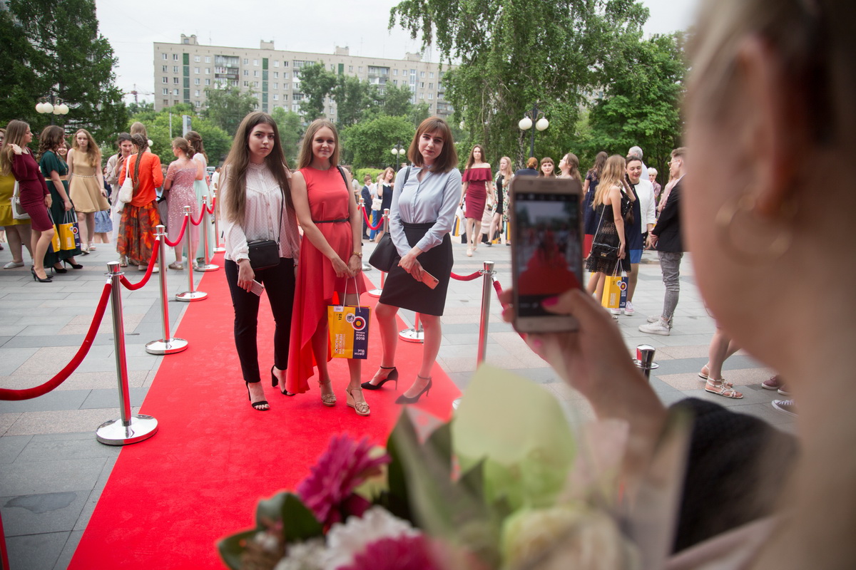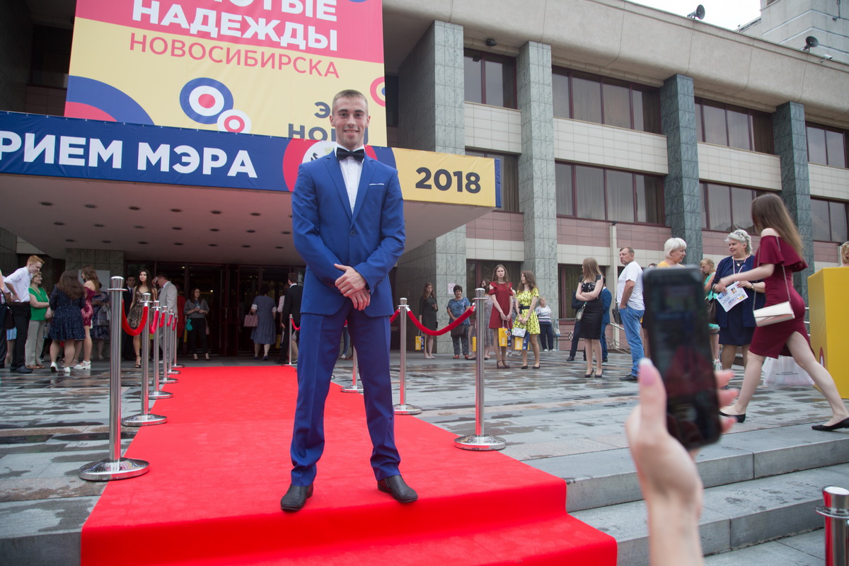 Лучшие новосибирские выпускники, как настоящие звезды, прошли по красной дорожке в холл концертного зала, где им вручали памятные подарки. Ребята смогли сделать фотографии на подготовленных фотозонах, пообщаться со сверстниками.