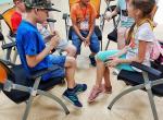 Более старшие ребята проходят теоретическую подготовку и переходят к четырем этапам практических испытаний: «моделирование Солнечной системы», «экипаж на орбите», «космическая центрифуга» и «космический биатлон».