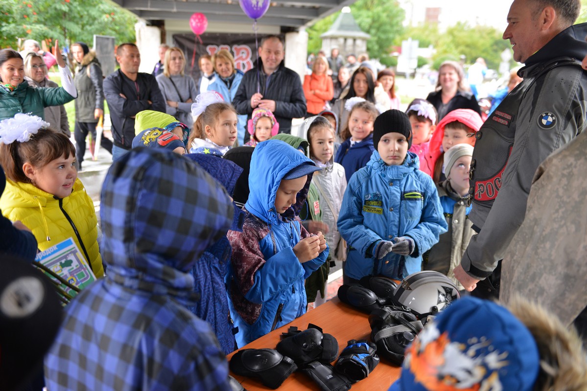 После торжественной линейки настал увлекательный квест. Ребята по всему Детскому автогородку искали потерянные странички книги ПДД. Странички были спрятаны на 6 станциях, где дети выполняли различные задания чтобы получить их. Как всегда, вызвала восторг на лицах ребят станция мотоклуба «Ночные волки» отделения Новониколаевск, которые с удовольствием рассказали ребятам о своем увлечении мототехникой и о важности защитной экипировки, а самым активным ребятам удалось даже прокатиться на эксклюзивном трайке.