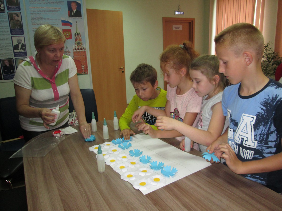 В рамках Всероссийского праздника Дня флага 22 августа сотрудники провели для ребят игровую программу «Российский триколор». Дети узнали историю появления российского флага. Они смогли проверить свои знания в выполнении конкурсных заданий. Участниками игровой программы был собран из бумажных цветов флаг России.