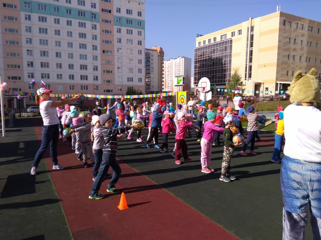 Новый учебный год детские сады №№ 77, 74, 3 Калининского района решили начать ярким, эмоциональным «Фестивалем мяча». Этот праздник был организован в рамках сетевого взаимодействия между детскими садами. Дети всех возрастов любят играть с мячом, именно поэтому была выбрана такая тематика фестиваля. В организации мероприятия активное участие приняли инструкторы по физической культуре: Киторова Татьяна Васильевна и Курлович Ольга Дмитриевна, д/с № 77; Коваленко Ольга Юрьевна, д/с № 3; Белянова Юлия Сергеевна и Никитенко Марина Алексеевна, д/с 74. Они и стали капитанами, ведущими свои команды через испытания. Свои детские сады на «Фестивале мяча» представили воспитанники старшего возраста. Для проведения этого мероприятия распахнул свои дружелюбные двери детский сад № 77 по улице Свечникова.