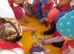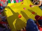 Загадочная игра «парашют-бильярд», что же это? Для того, чтобы дети догадались им предложили собрать пазл. Восторгу не было предела, когда они все дружно растянули большой парашют с лузами и все вместе закатывали в них по одному шару.