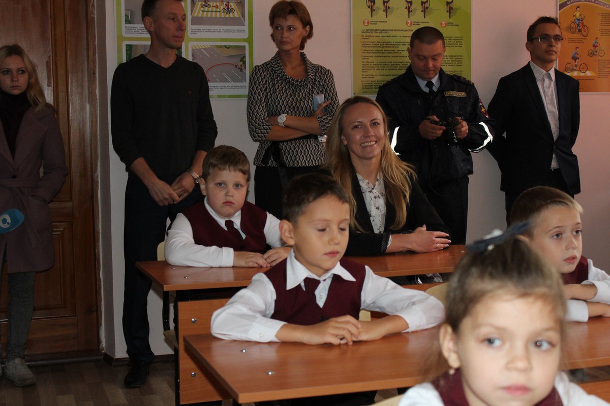 После торжественной линейки ребята из 1-го класса и почётные гости мероприятия перерезали ленточку и торжественно открыли класс «Безопасности». Право перерезать ленточку предоставили коммерческому директору сети автосервиса ФИТ Сервис Татьяне Владимировне Овчинниковой и ученице 1 «Г» класса. После этого слово предоставили методисту Новосибирского автогородка Лапской Елене Валериевне. Она рассказала участникам об оснащении кабинета: интерактивном оборудовании и учебно-методических пособиях и пригласила всех присутствующих пройти тест на знание Правил дорожного движения при помощи системы тестирования VOTUM.