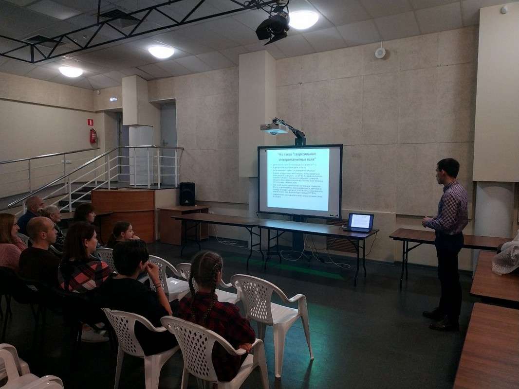 А вечером, в 18:30, в киностудии Планетария прошла лекция-дискуссия «Лазерные технологии в жизни и медицине – по следам Нобелевской премии». О применении сверхкоротких лазерных импульсов в исследовании структуры твёрдого тела рассказал младший научный сотрудник Института лазерной физики СО РАН, ассистент кафедры лазерных систем НГТУ Владимир Анатольевич Петров.