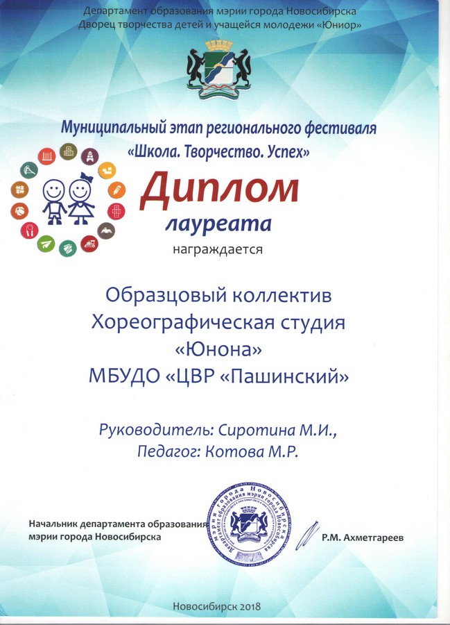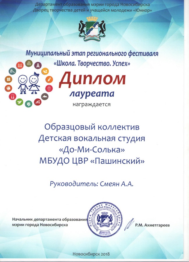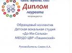 Образцовые коллективы Детская вокальная студия «До-Ми-Солька» и хореографическая студия «Юнона» защищали честь Калининского района и достойно представили свой родной Центр внешкольной работы «Пашинский», за что были удостоены Дипломов Лауреатов. Мы поздравляем наших воспитанников и желаем им дальнейших ПОБЕД!