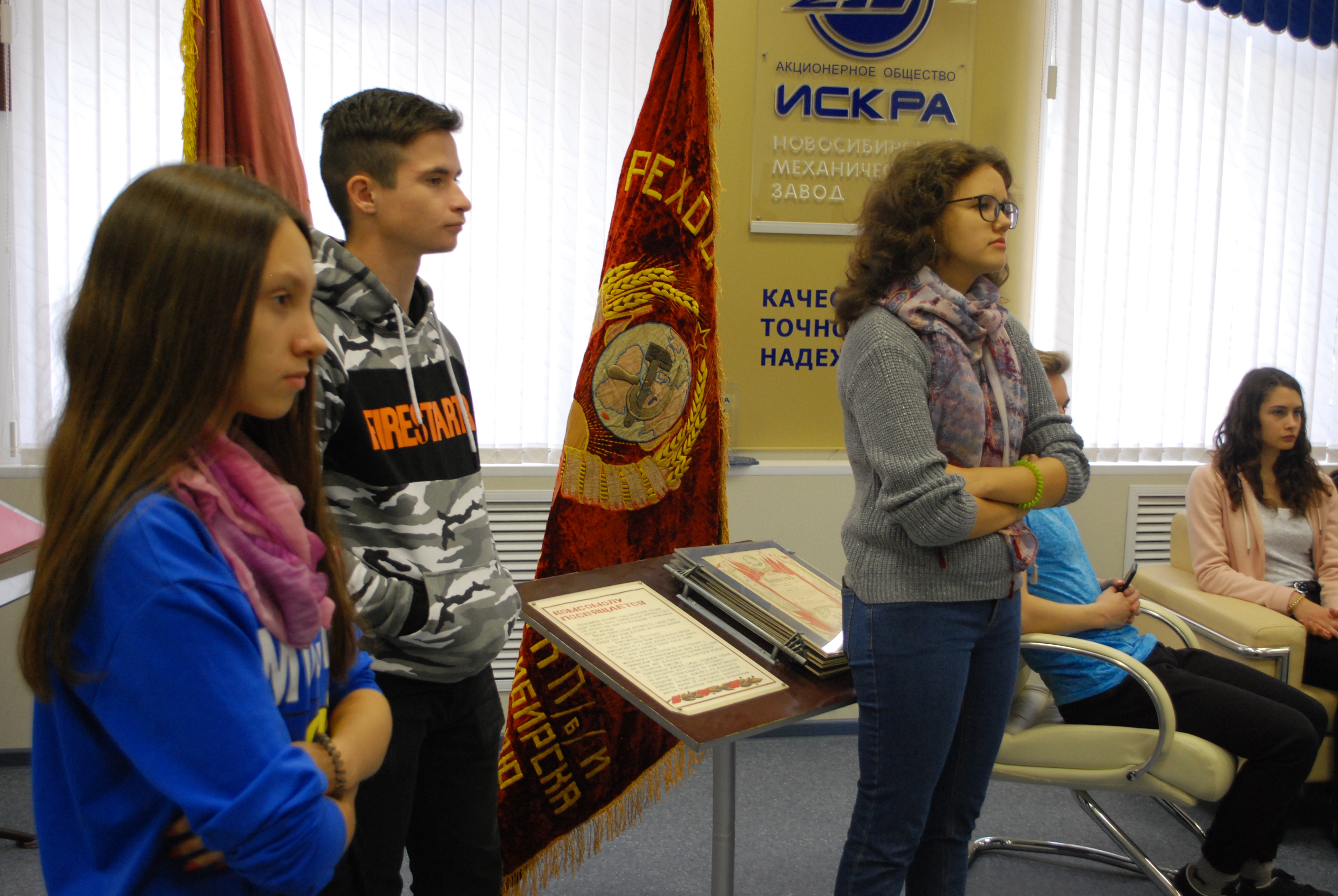 В музее завода учащиеся познакомились с его историей от 1942 года основания завода, когда НМЗ «ИСКРА» был одним из 46 предприятий, перемещенных на восток страны в годы Великой Отечественной Войны, до сегодняшних дней.