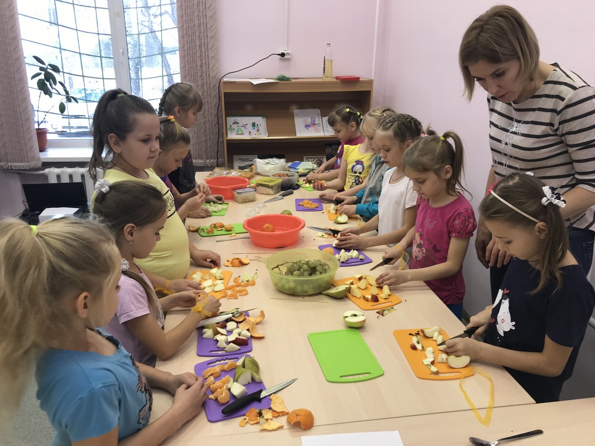 На станции «Спортивная» ребята выполнили веселую разминку, проработали разные группы мышц; на станции «Творческая» каждый участник своими руками изготовил открытку в технике скрапбукинг. На «Кулинарной» – готовили не только вкусные, но и полезные блюда. После завершения основных этапов мероприятия ребята и педагоги приступили к одному из самых приятных моментов – дегустации блюд.