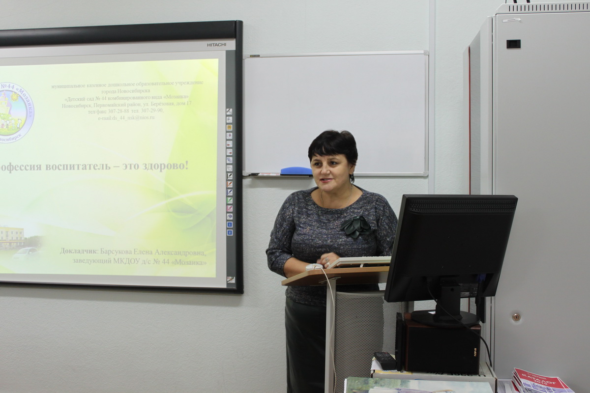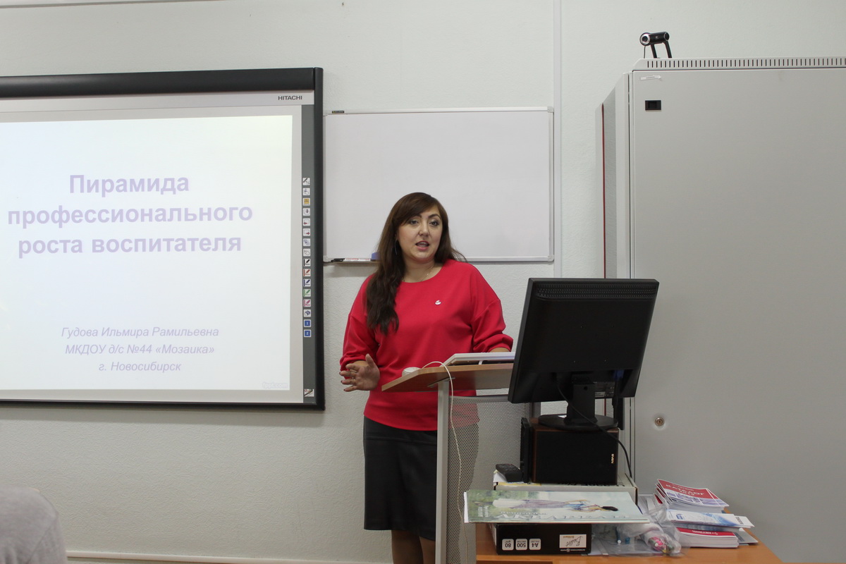 Барсукова Елена Александровна, заведующий, и Гудова Ильмира Рамильевна, старший воспитатель МКДОУ д/с № 44 «Мозаика», победитель городского и областного конкурса «Воспитатель года 2018», в своем выступлении «Воспитатель – это здорово!» познакомили коллег со своим опытом становления и работы в профессии.