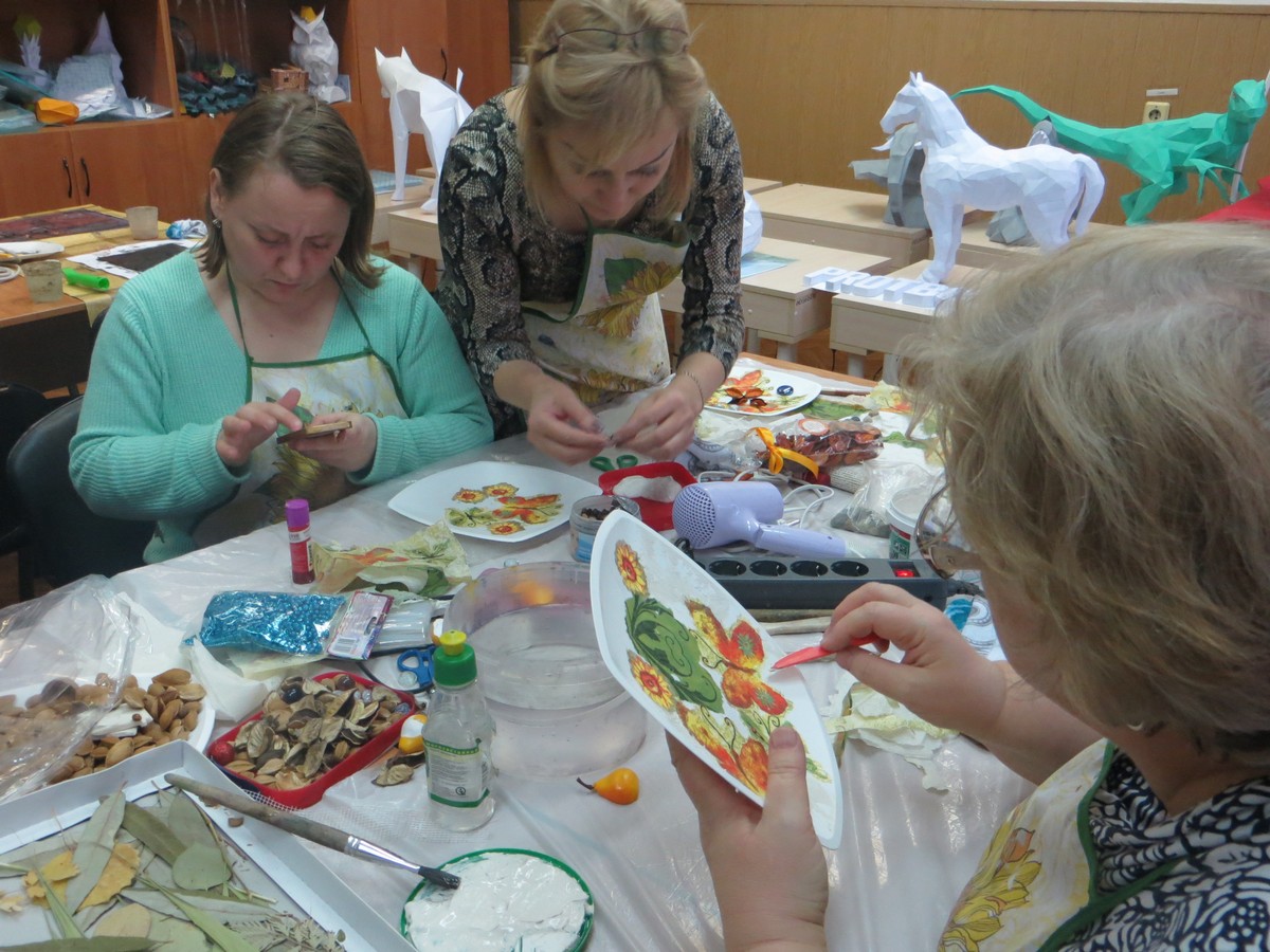 8 и 9 ноября в рамках Открытого областного фестиваля декоративно-прикладного творчества «Творю красоту своими руками» прошли мастер- классы, участниками которых стали педагоги учреждений дополнительного образования Центрального округа, Дзержинского, Кировского, Октябрьского, Первомайского районов, учителя технологии и ИЗО школ города и области. Шестой год работы фестиваля подтверждает необходимость такого вида мероприятия. В течение двух дней в теплой рабочей обстановке прошли мастер-классы: по ватной игрушке под руководством Воробьевой С.Г., МКУ МЦ «Сфера»; китайской живописи, представленной Простакишиной О.П., ЦДО «Алые паруса»; декорированию шаров в технике темари проведенного Корчун Н. В., МКОУ «Прогимназия № 1»; по изготовлению натюрморта в различных техниках, проводимого Зотовой Н.Н., педагогом ДДТ им. Ефремова; акварельному пейзажу и полигональному моделированию из бумаги, которые представляли педагоги ЦДО «Алые паруса» Нуждова М.О и Рогова Ю.П. На мастер-классах была представлена не только технология, но и методические приемы из опыта работы педагогов, их проводивших, позволяющие интересно преподносить материал детям.