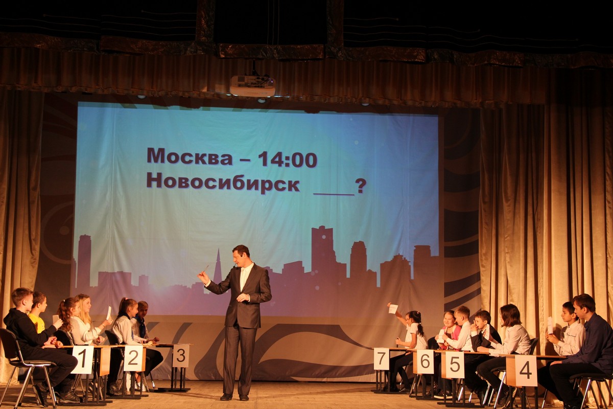 II раунд «Который час?». Одним из самых сложных заданий оказалось использование карты часовых поясов Росси. С её помощью участники должны были посчитать время в определенном городе, отталкиваясь от исходно-предложенного. Например, при условии, что в Новосибирске 14:00, сколько же тогда в Хабаровске?