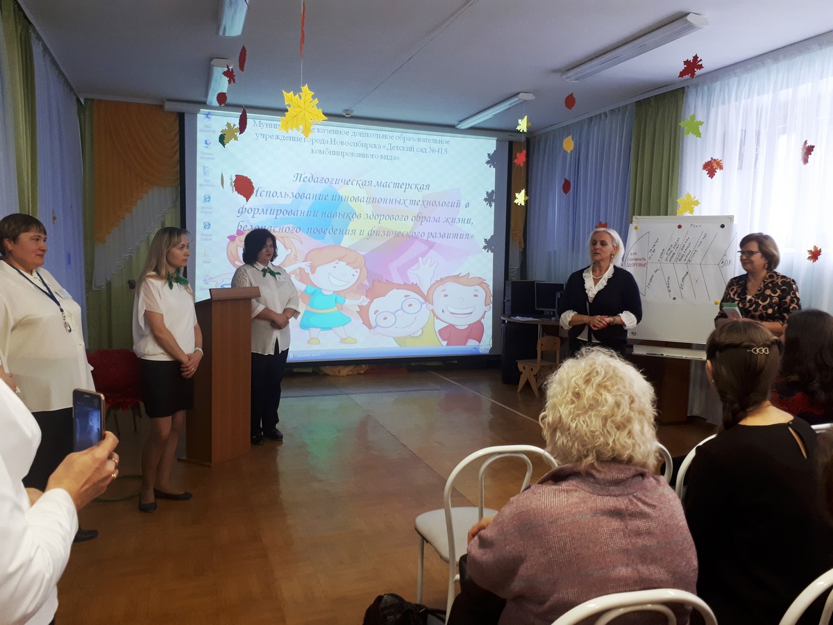 15 ноября на базе МКДОУ д/с № 415 состоялась очередная городская педагогическая мастерская в рамках проекта ГЦОиЗ «Магистр» «Оптимизация здоровьесберегающей деятельности в ДОУ», организованная сотрудниками отдела профилактической работы с образовательными организациями, семьей и детьми ГЦОиЗ «Магистр». Педагоги ДОУ № 415 предложили представителям пилотных детских садов обсудить тему «Использование инновационных технологий в формировании навыков здорового образа жизни, безопасного поведения и физического развития дошкольников».
