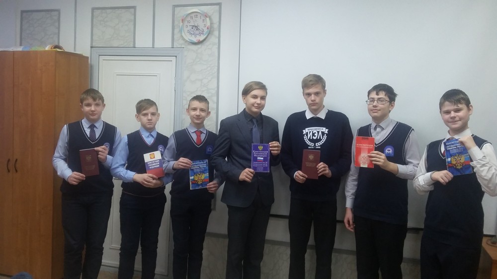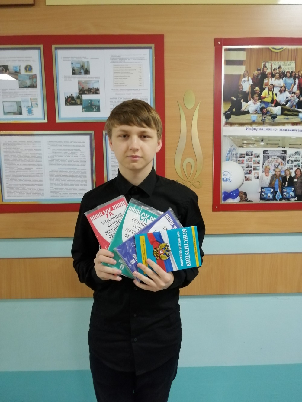 22 ноября девятиклассники показали знание Конституции РФ в викторине. Наибольшее затруднения у обучающихся вызывает разграничение полномочий между Российской Федерацией и субъектами. Обучающиеся 10-х классов приняли участие в олимпиаде на знание основных законов нашего государства: Конституции РФ, Гражданского кодекса РФ, Административного кодекса РФ, Уголовного кодекса РФ, Трудового кодекса РФ. Лучшие знания показал Плотников Дмитрий, 10 «А» класс.
