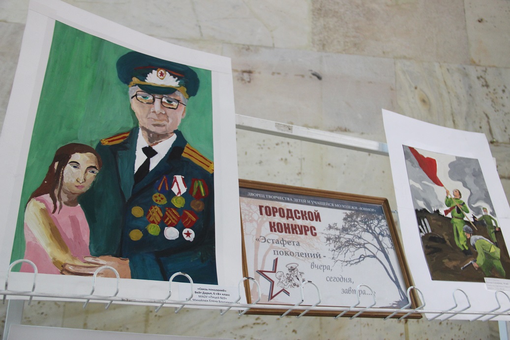 В фойе Дворца культуры работали виртуальные фото-зоны и выставки. На одной из экспозиций выставки были представлены лучшие художественные работы участников конкурса рисунков и сочинений «Связь поколений – вчера, сегодня, завтра…». Учредителем конкурса является департамент образования мэрии города Новосибирска.