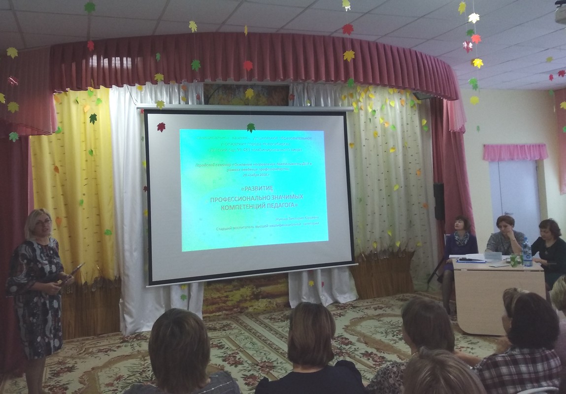 В ходе работы семинара педагоги познакомились с деятельностью детского сада № 483 по формированию профессионально значимых компетенций у педагогов данного дошкольного учреждения (Жукова Виктория Юрьевна, старший воспитатель МКДОУ д/с № 483).