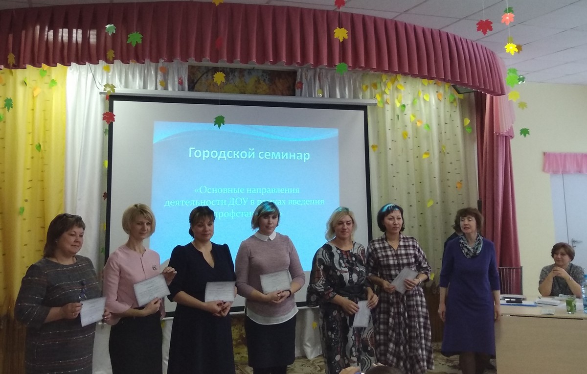 28 ноября на площадке детского сада № 303 Октябрьского района прошел городской семинар «Основные направления деятельности ДОО в рамках введения профстандарта» для старших воспитателей, педагогических работников дошкольных образовательных организаций города Новосибирска. Семинар организован Городским центром развития образования. Модератор семинара – методист территориальной группы методистов в Октябрьском районе МКУДПО «ГЦРО» Акулович Светлана Евгеньевна. В работе семинара приняли участие: Чечулина Оксана Геннадьевна, к.п.н., доцент, заведующий кафедрой теории и методики дошкольного образования ГАУ ДПО НСО НИПКиПРО и 46 педагогов дошкольных образовательных организаций города Новосибирска.