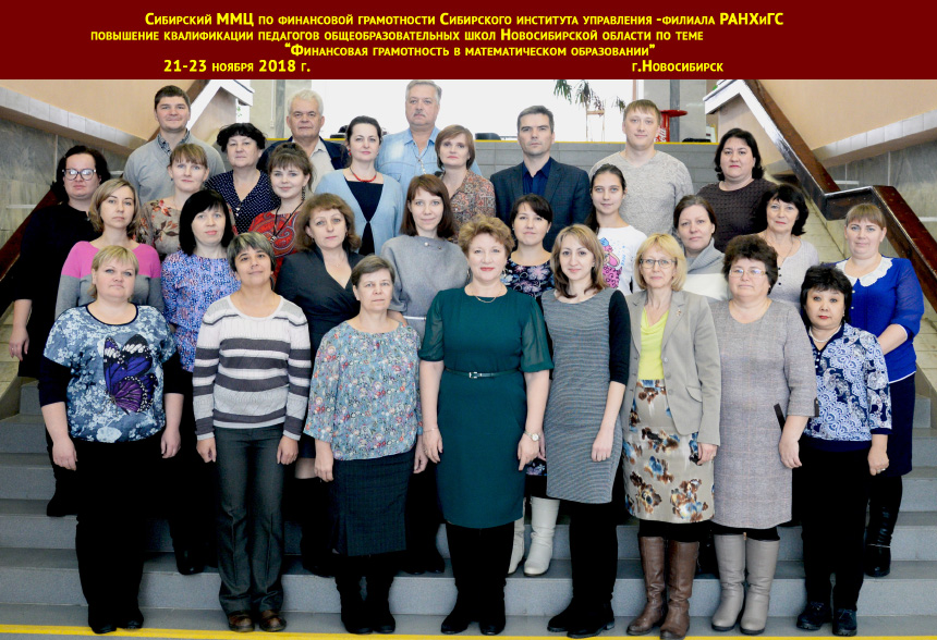 Учителя математики стали первой группой педагогов-предметников образовательных организаций г. Новосибирска и Новосибирской области, которая прошла обучение по дополнительной профессиональной программе (повышения квалификации) в третьей декаде ноября 2018 года для формирования финансовой грамотности в школьном курсе математики.