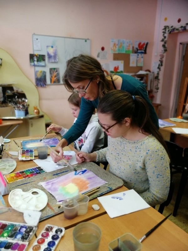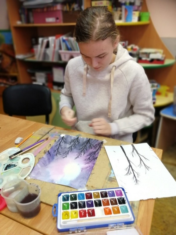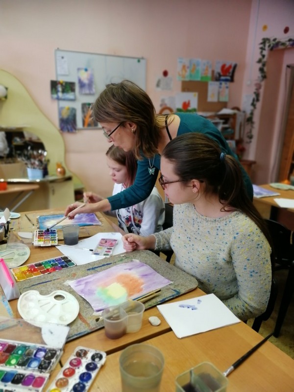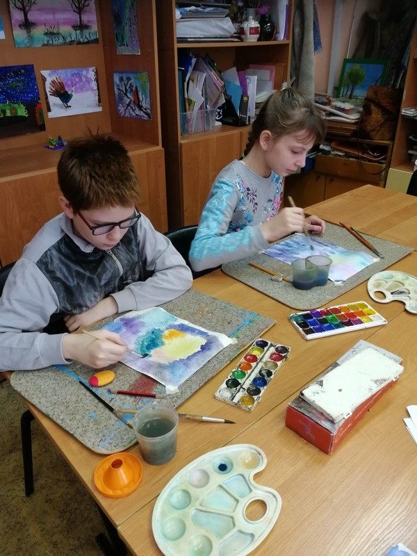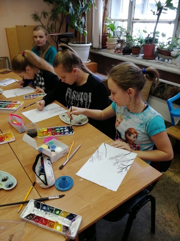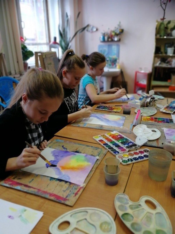 Под руководством прекрасного педагога, Нуждовой Марианны Олеговны, учащиеся 5-х и 6-х классов МБОУ СОШ №57, СОШ №111, СОШ №153, вооружившись акварельными красками, кисточками, азами техники «мокрым по мокрому», а главное, вниманием и любовью к прекрасному, с упоением создали свои собственные шедевры. Приняли решение, в какую рамочку они поместят свой рисунок и кому подарят – маме, папе или бабушке.