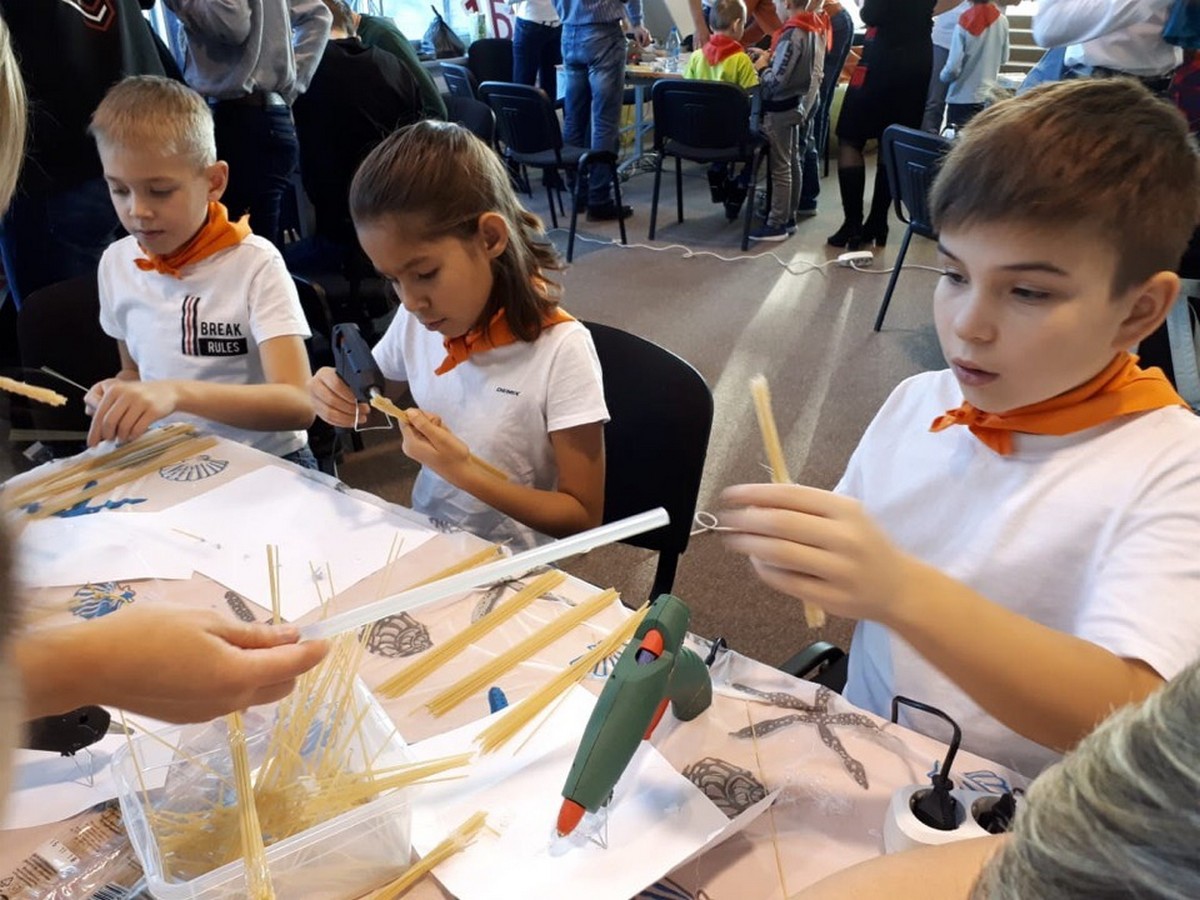 Участники соревновались в двух форматах: «Семейный» и «Школьно-студенческий». Соревнование проходило в несколько этапов: сначала необходимо было выполнить за 35 минут чертеж будущей конструкции на миллиметровой бумаге по заданным параметрам, затем за 2,5 часа изготовить мост из 3 пачек спагетти с условием, что вес готовой конструкции не должен превышать 1 килограмм. Третий этап – это презентация команды и продукта ее слаженной работы. И, наконец, завершающий этап – это испытание конструкции на прочность. Наш «Мост в сказку» не имел равных и выдержал нагрузку более 24 килограммов, при этом даже не разрушившись. Команда сработала слаженно, дружно и креативно. Молодцы! Так держать!