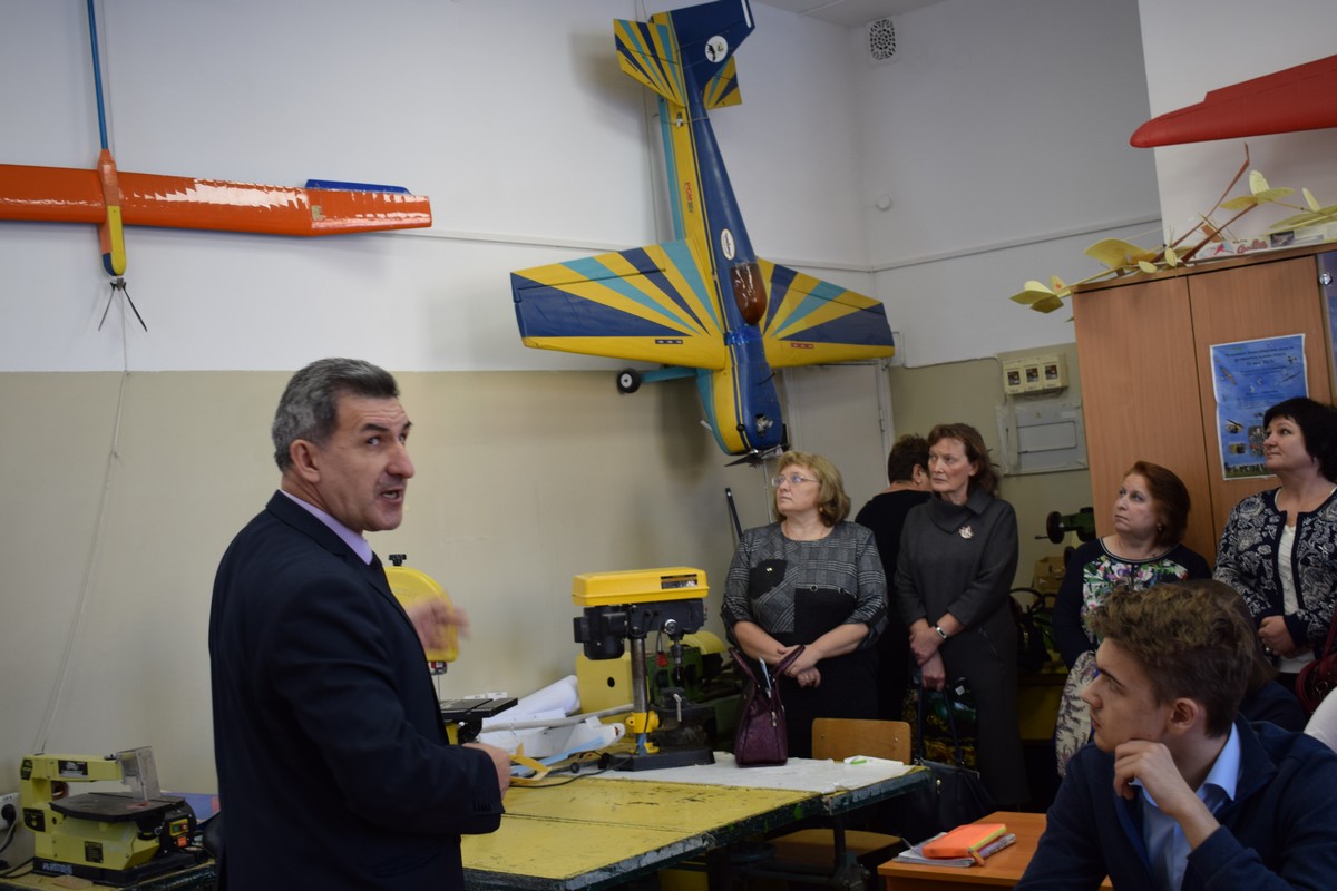 Затем участники семинара в процессе экскурсии познакомились с лицейским музеем авиации и космонавтики, посетили кабинет авиамоделирования и лабораторию беспилотных систем.