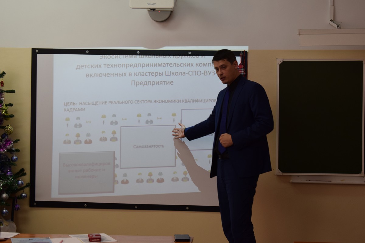 Общеобразовательная школа – МБОУ СОШ № 165 имени В.А. Бердышева – «Детские технопредпринимательские компании как основа треугольника М.А. Лаврентьева: Образование-Наука-Предприятие». Давыдов Максим Евгеньевич, директор школы.