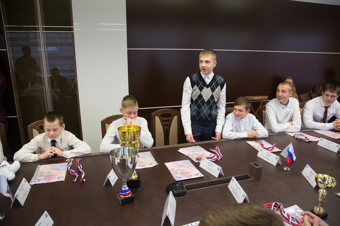 На встречу школьники пришли с кубками и медалями и поделились своими впечатлениями от организации соревнований, уровня подготовки участников, общения с ребятами из других сборных, рассказали, что было самым трудным. Щеников Никита отметил, что в финальной встрече он проиграл всего за секунду до окончания.