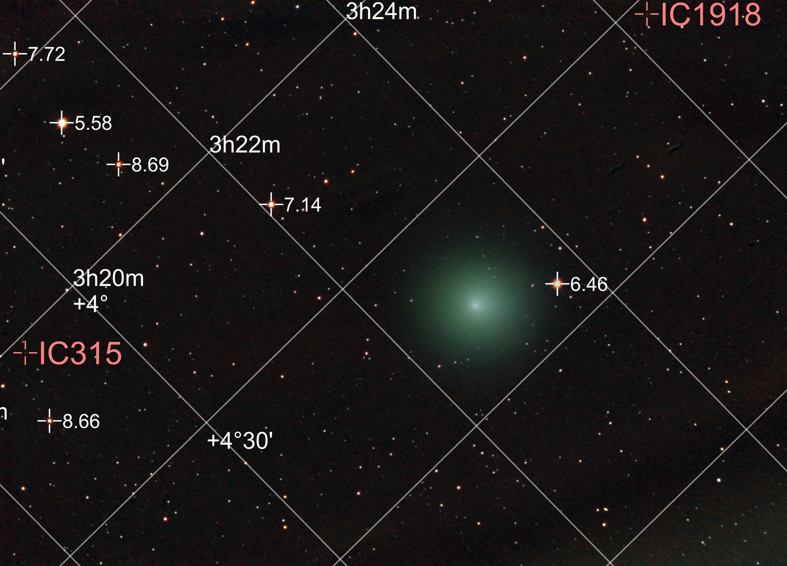 Ближайшая к комете сравнительно яркая звезда – HIP 15087A (+6.4m).