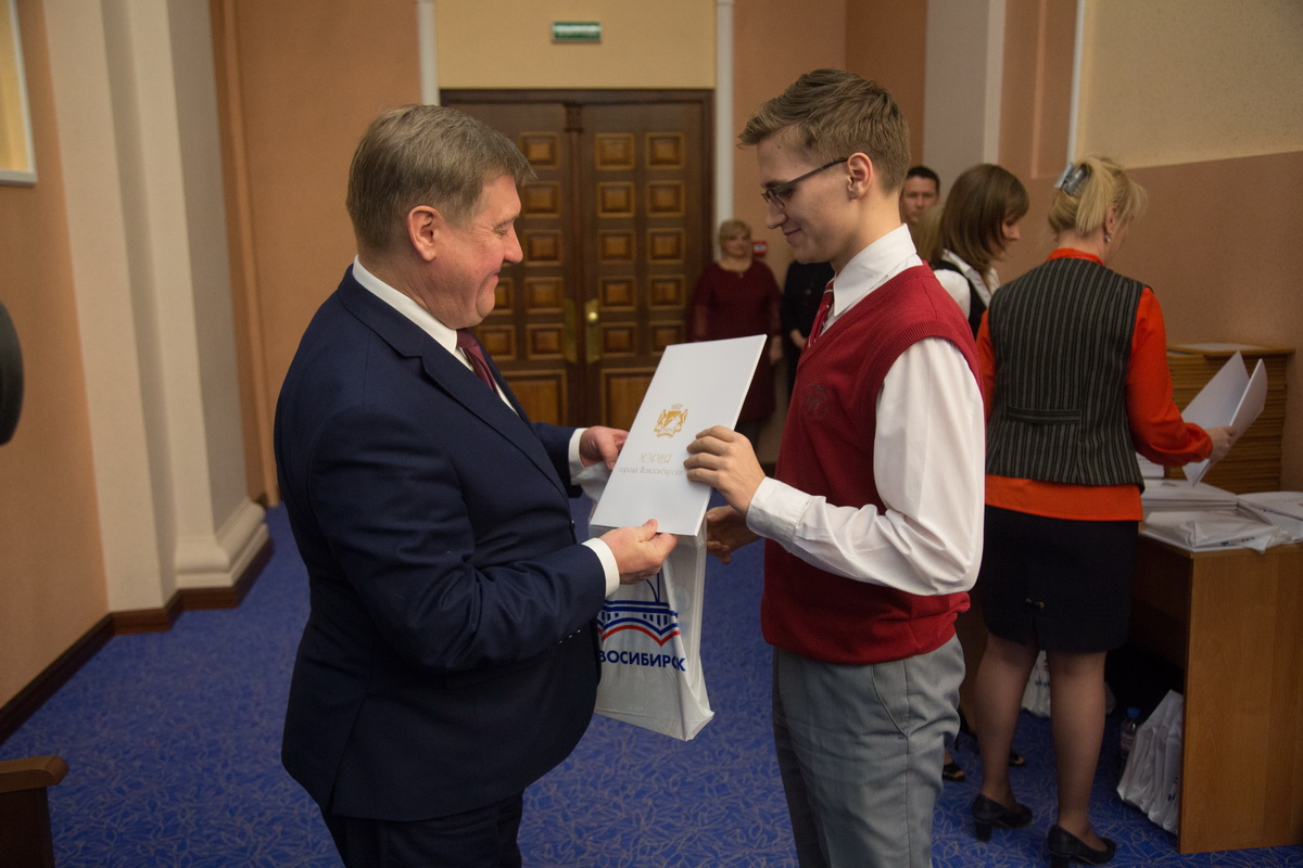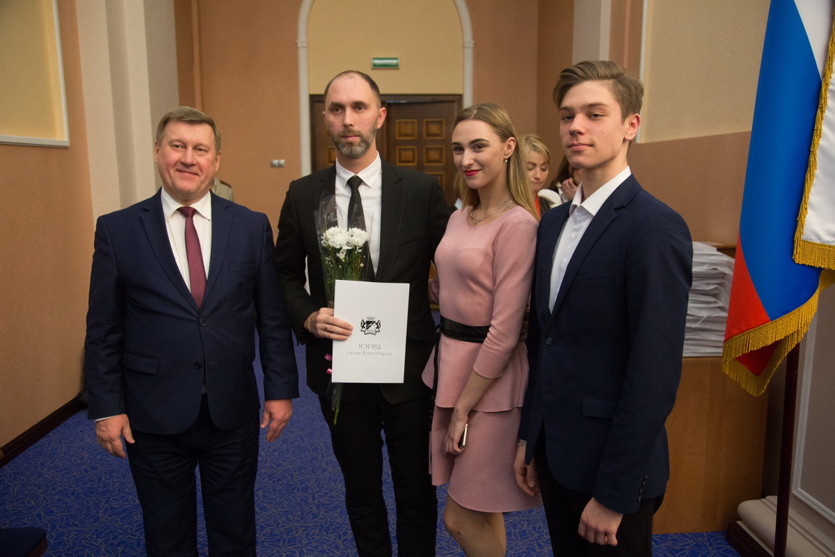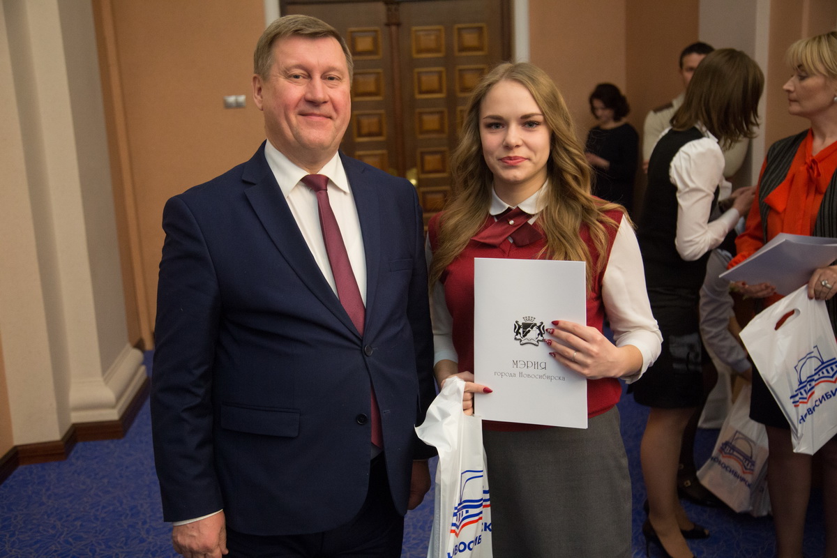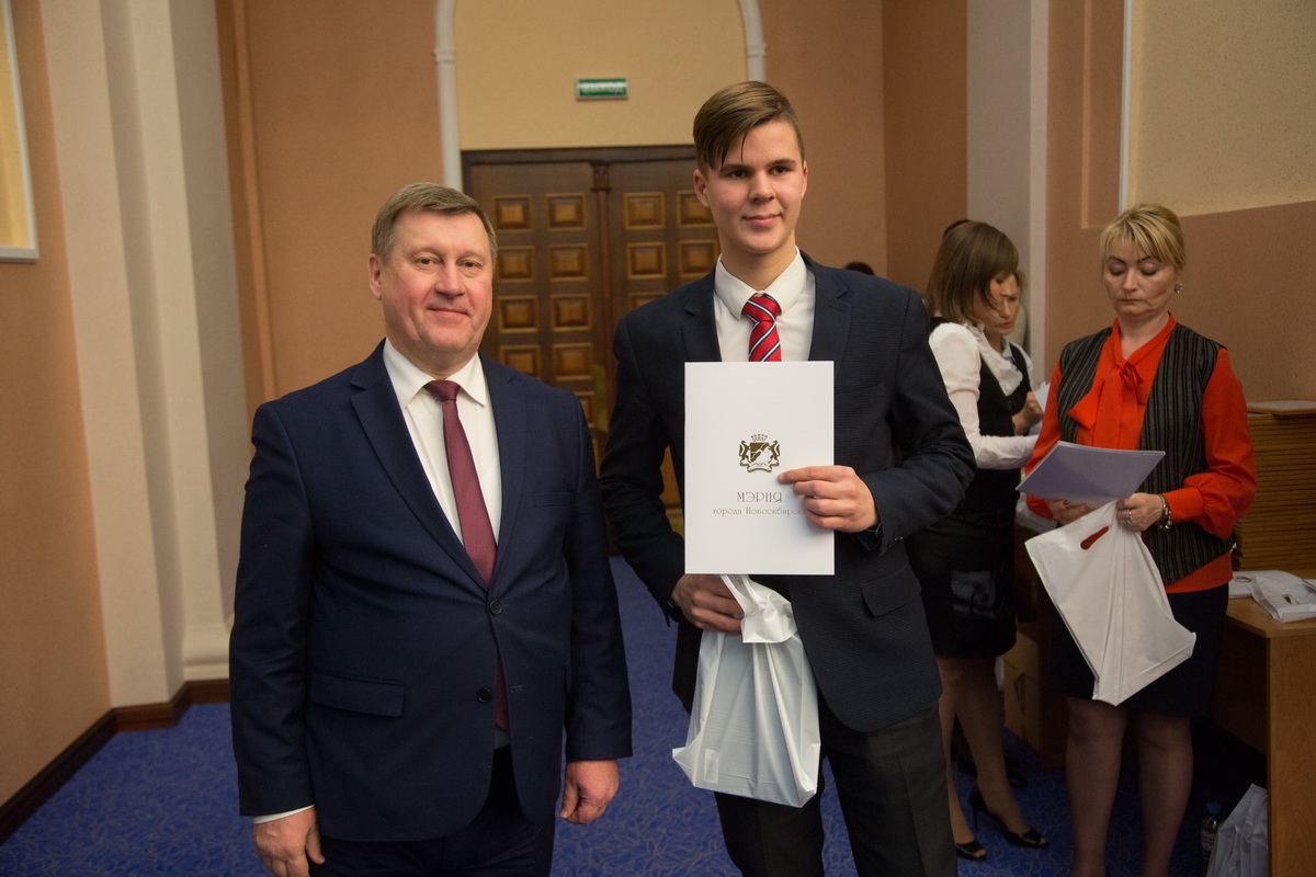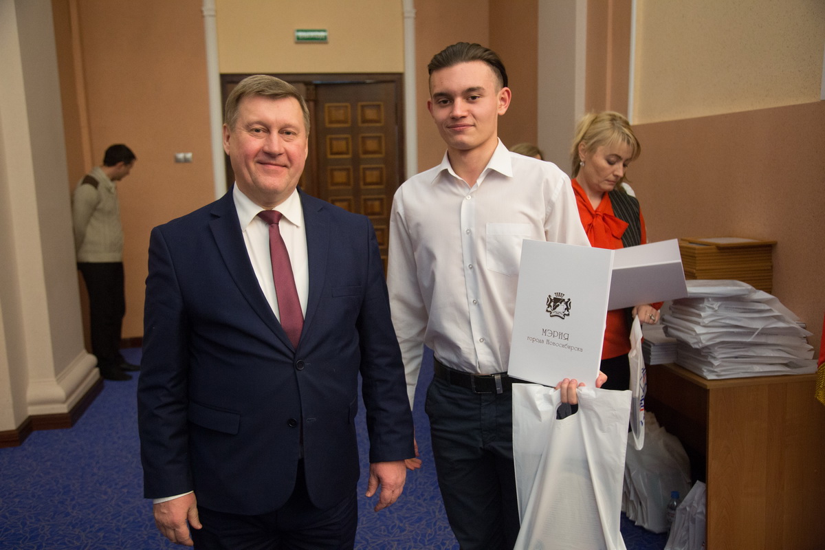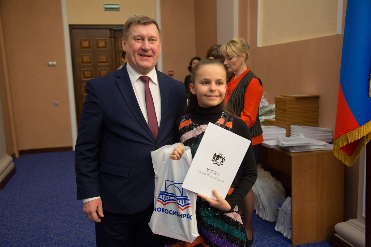 Мэр Новосибирска Анатолий Евгеньевич Локоть встретился с юными дарованиями – победителями и призерами международных и всероссийских творческих, технических, спортивных фестивалей, конкурсов и соревнований. Торжественный прием прошел 27 декабря в большом зале мэрии.