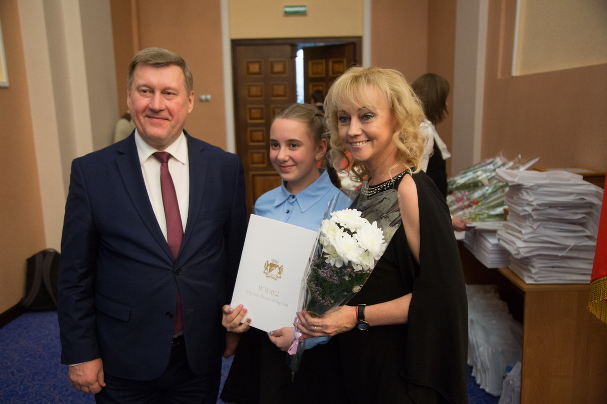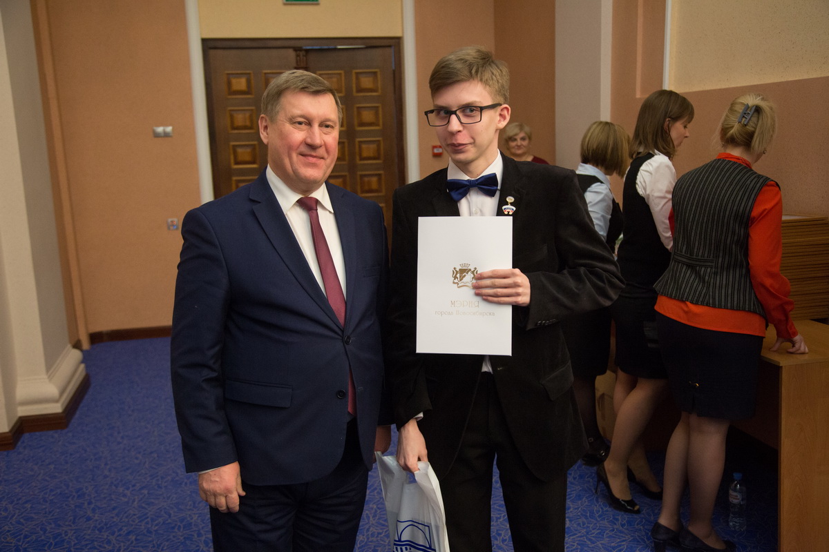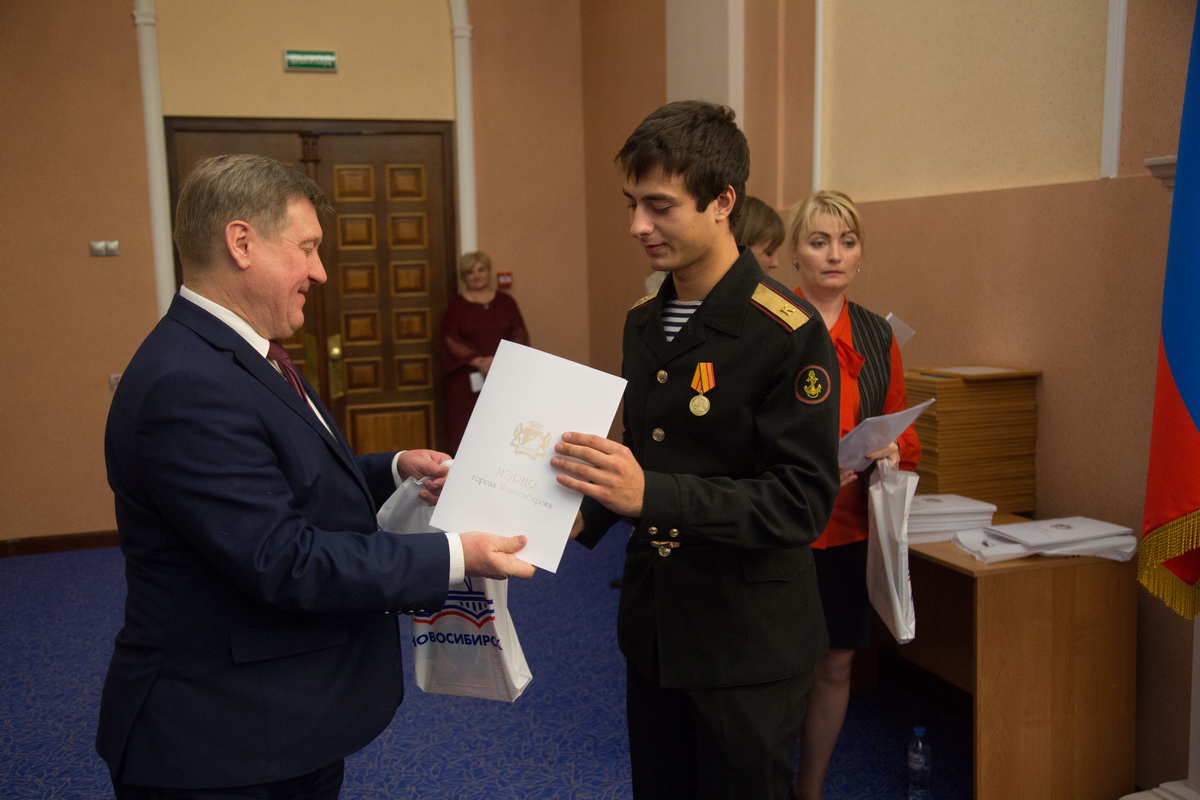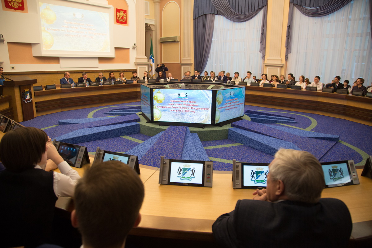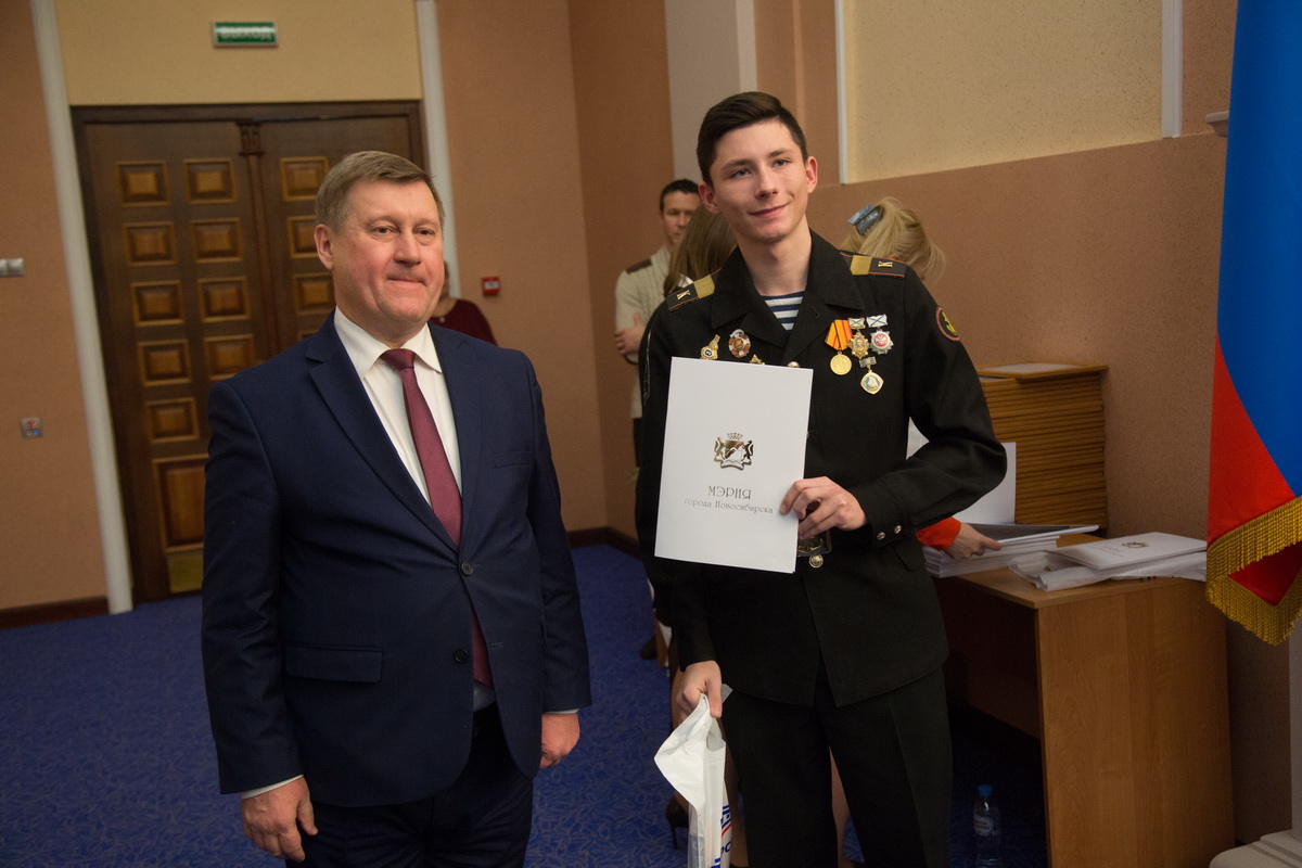 Мэр Новосибирска Анатолий Евгеньевич Локоть встретился с юными дарованиями – победителями и призерами международных и всероссийских творческих, технических, спортивных фестивалей, конкурсов и соревнований. Торжественный прием прошел 27 декабря в большом зале мэрии.