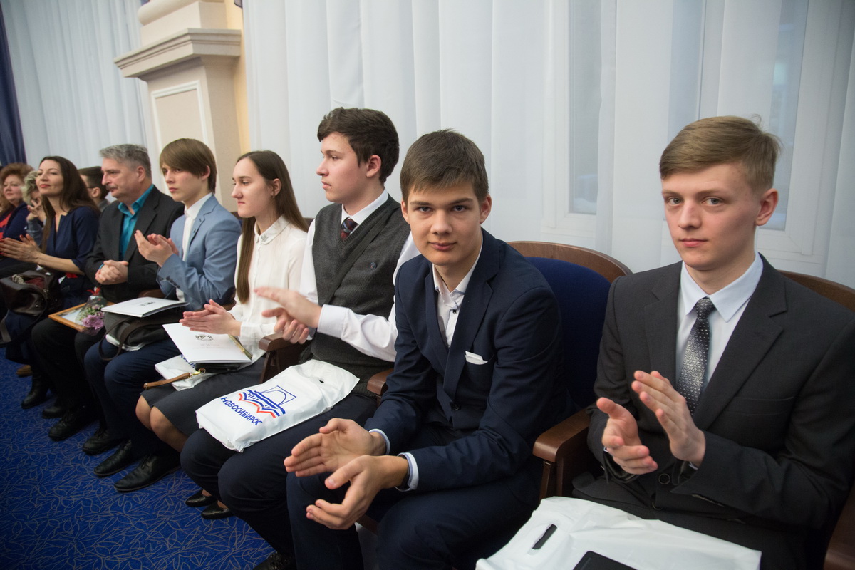 Глава города поприветствовал участников встречи: «По традиции мы собрали здесь самых талантливых, самых умных и целеустремленных, тех, кто умеет добиваться поставленных целей. Преимуществом Новосибирска всегда был интеллектуальный потенциал, а это, в первую очередь, результат образовательного процесса в наших школах. Особенность нашего образования в том, чтобы не просто выучить предмет наизусть, а воспитать умение самостоятельно мыслить, искать решение, идти к поставленной цели. Такой подход дает свои результаты – это победы наших детей на всевозможных конкурсах, соревнованиях, фестивалях. В канун Нового года желаю вам дальнейших успехов, не останавливаться на достигнутом, ставить новые цели, счастья, добра. Я уверен, новый год принесет новые достижения».