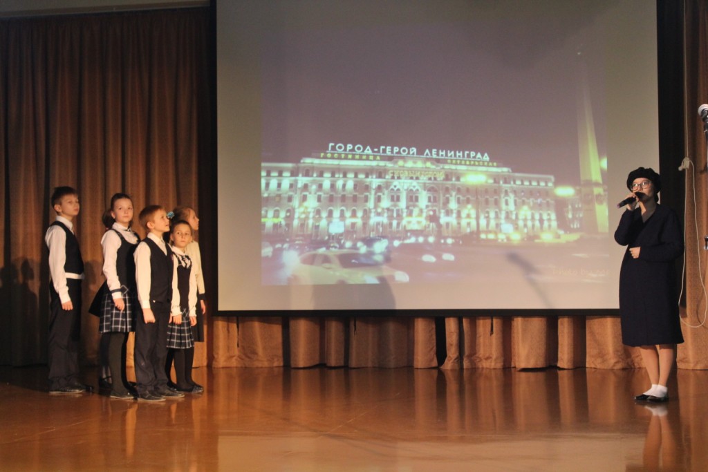 Для обучающихся школы и гостей выступил театр-студия «Мы» под руководством Шемякиной В.Ю., которая подготовила литературно- музыкальные номера, стихотворения, театрализованные представления. Ребята обыграли все ключевые моменты: начало войны, проводы мальчишек на войну и даже четко отмеренные кусочки хлеба по 125 гр. Ведущие познакомили учащихся с «Дорогой жизни», дневником Тани Савичевой, рисунками Вали Тонск и с другими фактами Блокады Ленинграда.