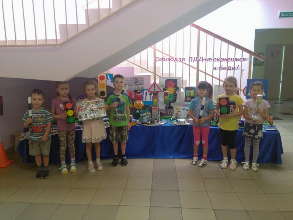 В холле учреждения расположились сотни поделок и рисунков, яркие светофоры, оживленные перекрестки, веселые дорожные знаки. Работы получились очень разнообразными. Одни малыши нарисовали рисунки, другие выполнили аппликации из бумаги и пластилина, а некоторые ребята вместе со своими родителями изготовили макеты улично-дорожной сети.