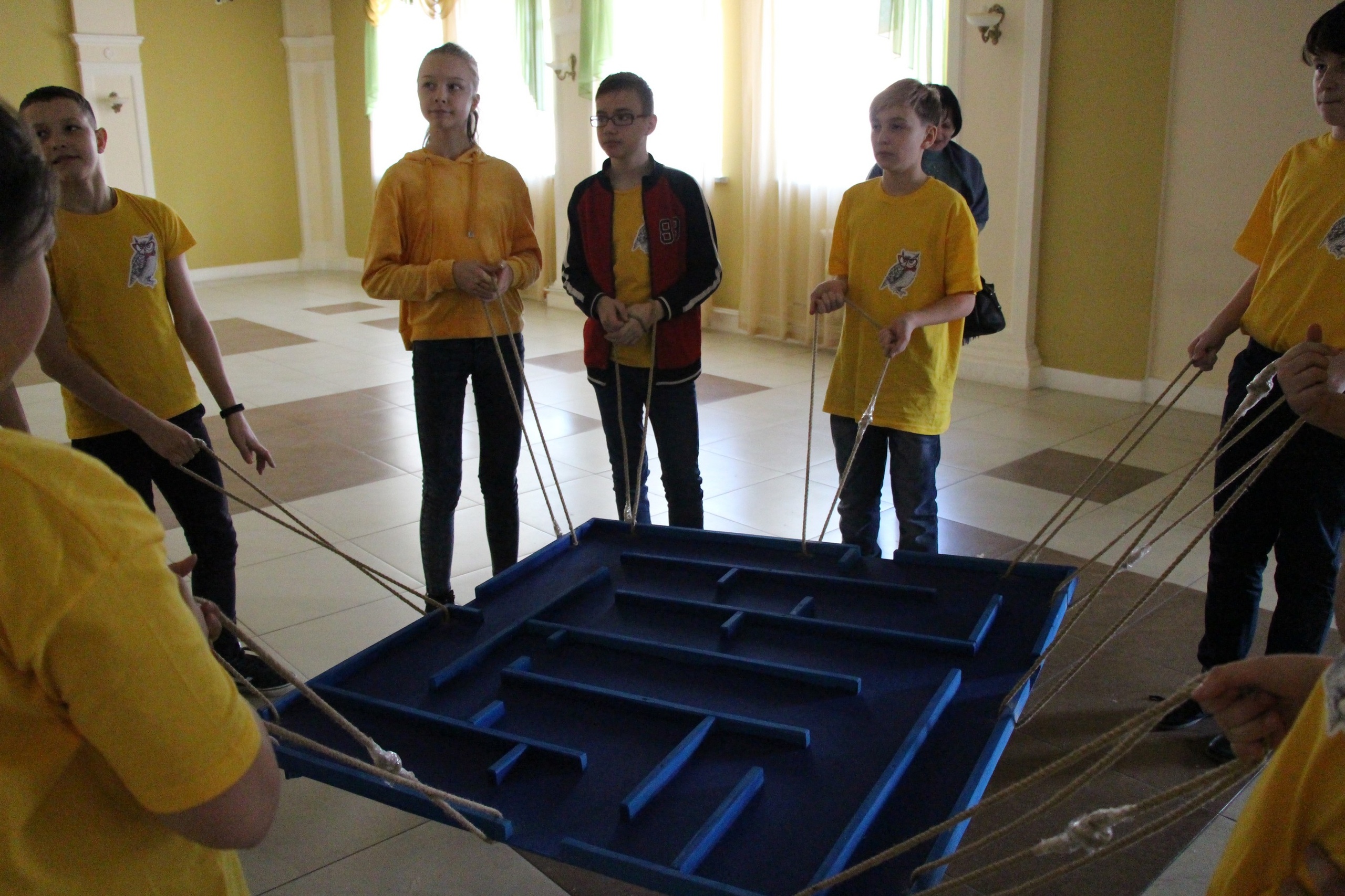 V комната «Лабиринт» – самый настоящий лабиринт мыслей и действий поджидал наших Хранителей в просторном зале Дома творчества. Задание-аттракцион предполагало прохождение командного лабиринта благодаря совместным усилиям. Достаточно большая конструкция с легкостью приходила в движение, как только к делу подключалась вся команда. Задача на первый взгляд была простой – довести шарик от входа к выходу, но на деле все было не так просто. Чему же научились ребята? Из записей наших героев можно выделить такие: проявление лидерских качеств, доверие руководителю, командный дух, сплоченность, и такой вывод «Командная работа – залог успеха».