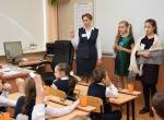 После приветственного слова директора гимназии В.Г. Косьяненко гостям был показан фильм о школе. С докладом «Воспитания гуманистических ценностей гимназистов через урочную и внеурочную деятельность» выступила заместитель директора по воспитательной работе Е.А. Черникова.