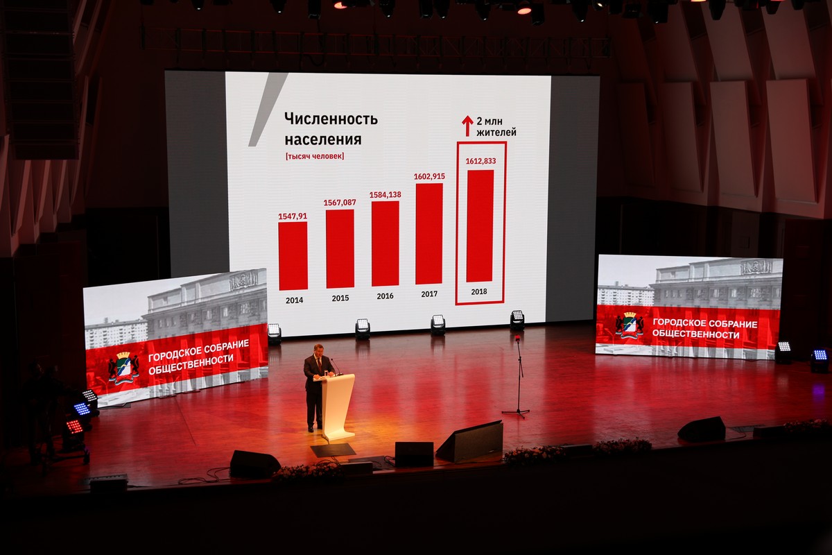 25 февраля в концертном зале имени Арнольда Каца Новосибирской филармонии состоялось общегородское собрание, посвященное подведению итогов социально-экономического развития Новосибирска за 2014-2018 годы.