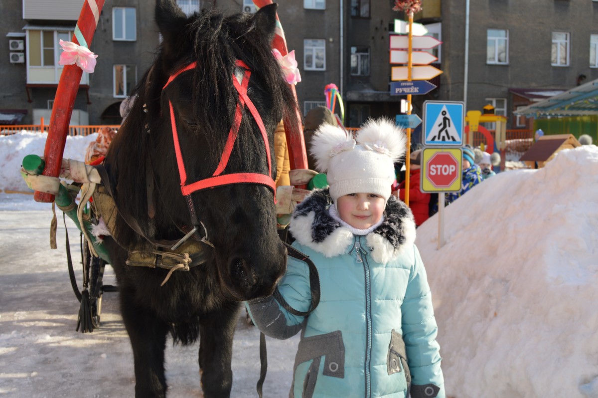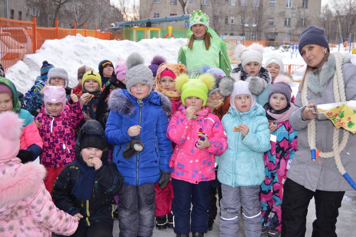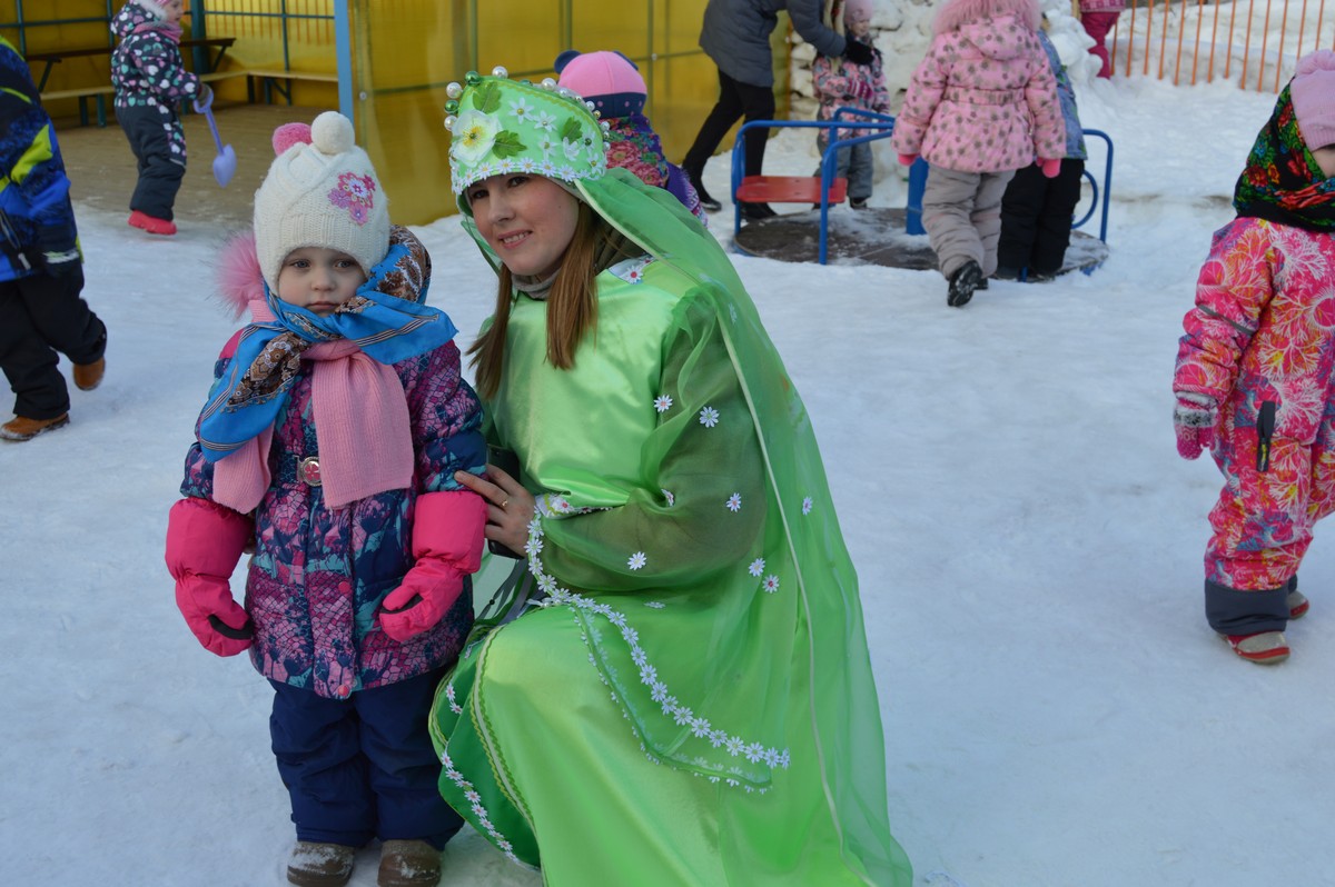 По традиции праздник начинается в зале, куда детей всех групп зазывает веселый Скоморох: веселые игры, загадки, пляски. Потом веселье плавно выплёскивается на улицу! И вот здесь-то приходит Зима с пляской «А на улице мороз», подвижными играми, закличками; появляется Весна. Зима передает ей бразды правления. А дальше самое любимое детворой: вкусные блины и катание на лошади! А когда старшим детям разрешили покормить лошадку – восторгу не было предела!