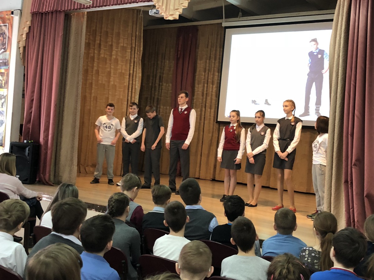 Школьная сцена на время этого урока превратилась в подиум, на котором показывали модели школьной формы ученики 6-х и 9-х классов.