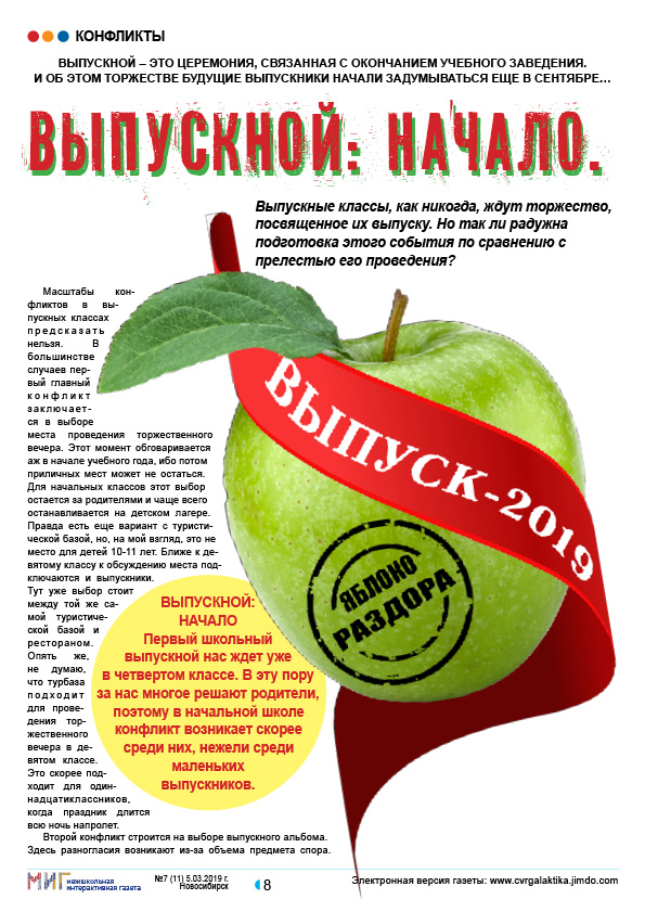 С одной стороны, номер получился очень лёгким, с подборкой музыки и обзорами фильмов. Но с другой стороны мы затронули такие важные темы, как выпускной в четвёртом, девятом и одиннадцатом классах. Рассказали о киберспорте и моде на зарубежную литературу.