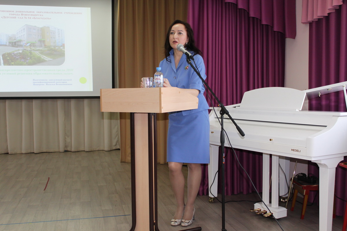 Оценка условий осуществления образовательной деятельности – один из критериев оценки качества образования. Машарова Наталья Вениаминовна, заведующий МКДОУ д/с № 84 Ленинского района представила подходы к организации развивающей предметно-пространственной среды как системы условий в решении образовательных задач.