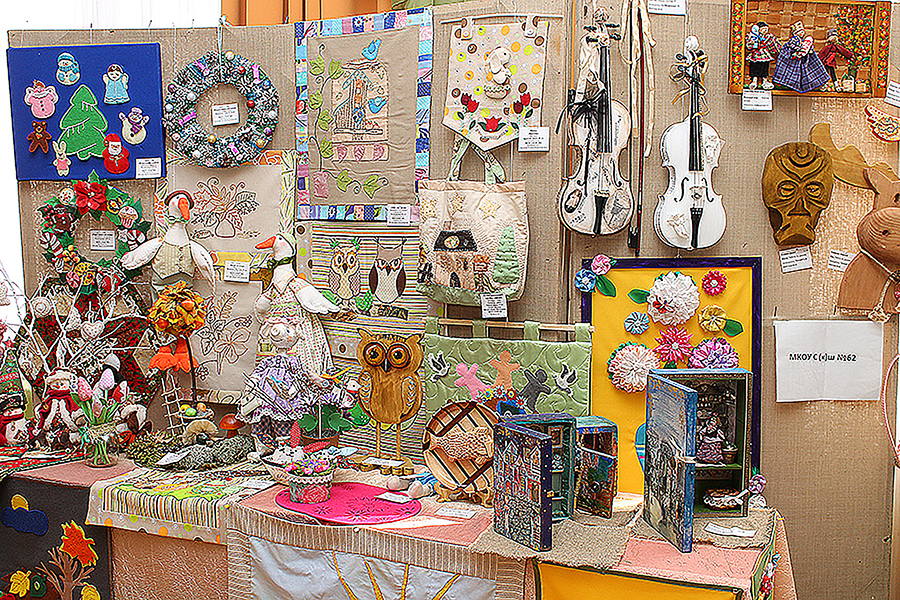 В выставке приняли участие 18 образовательных учреждений Ленинского района с разными видами декоративно-прикладного творчества: вышивка, вязание крючком и спицами, живопись шерстью, художественные куклы, декупаж, роспись по дереву, аппликация из ткани, пластилиновая живопись, резьба по дереву, художественные работы из джутового шпагата и многое другое.