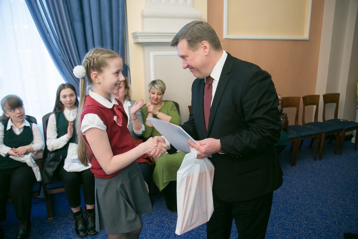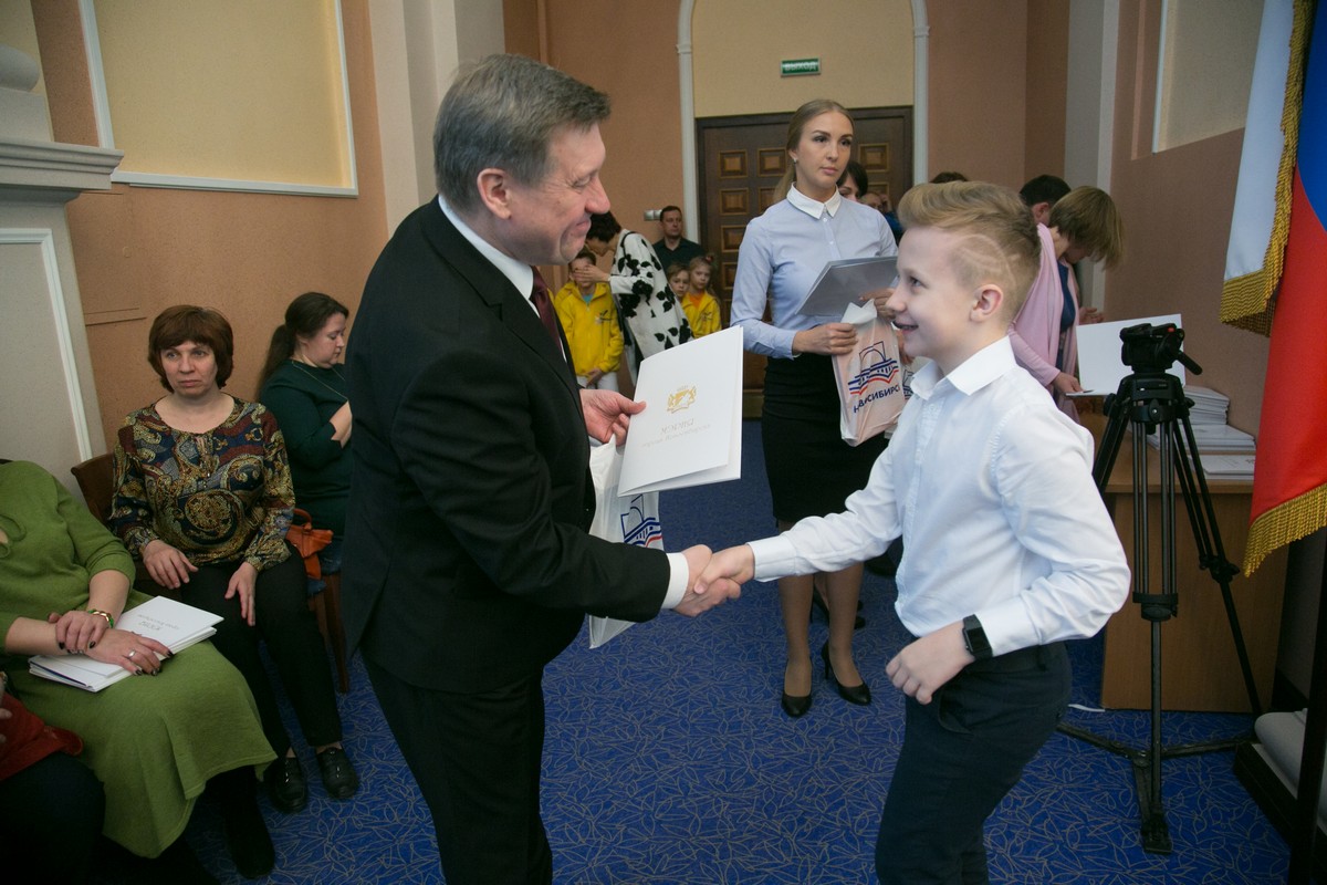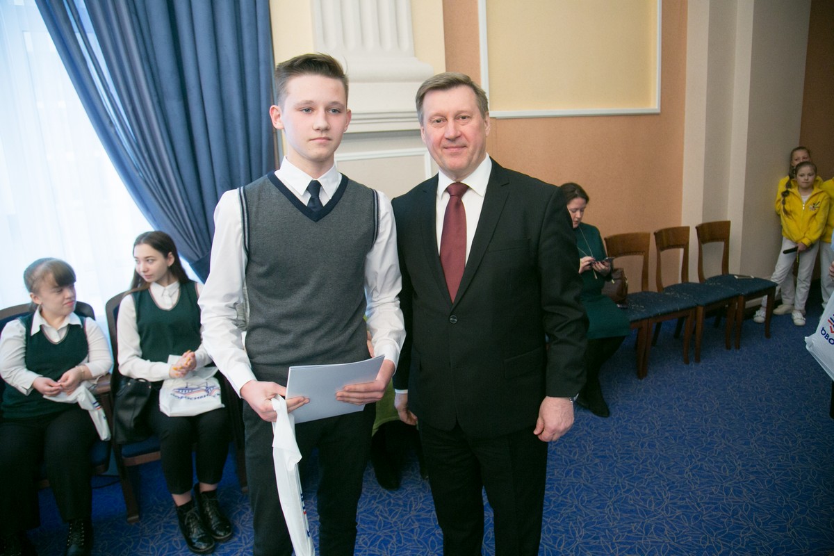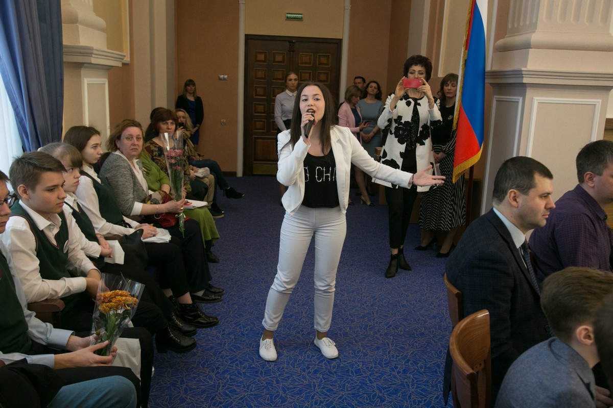 Школьников чествовали за высокие достижения в III региональном чемпионате по профессиональному мастерству для людей с инвалидностью «Абилимпикс», конкурсе и активную творческую деятельность в летней школе «ПатриУм», творческих конкурсах, фестивалях художественной направленности, спортивных соревнованиях по итогам 2018 года, за победы в Чемпионате мира по ментальной арифметике и Всемирных летних игр Специальной Олимпиады.