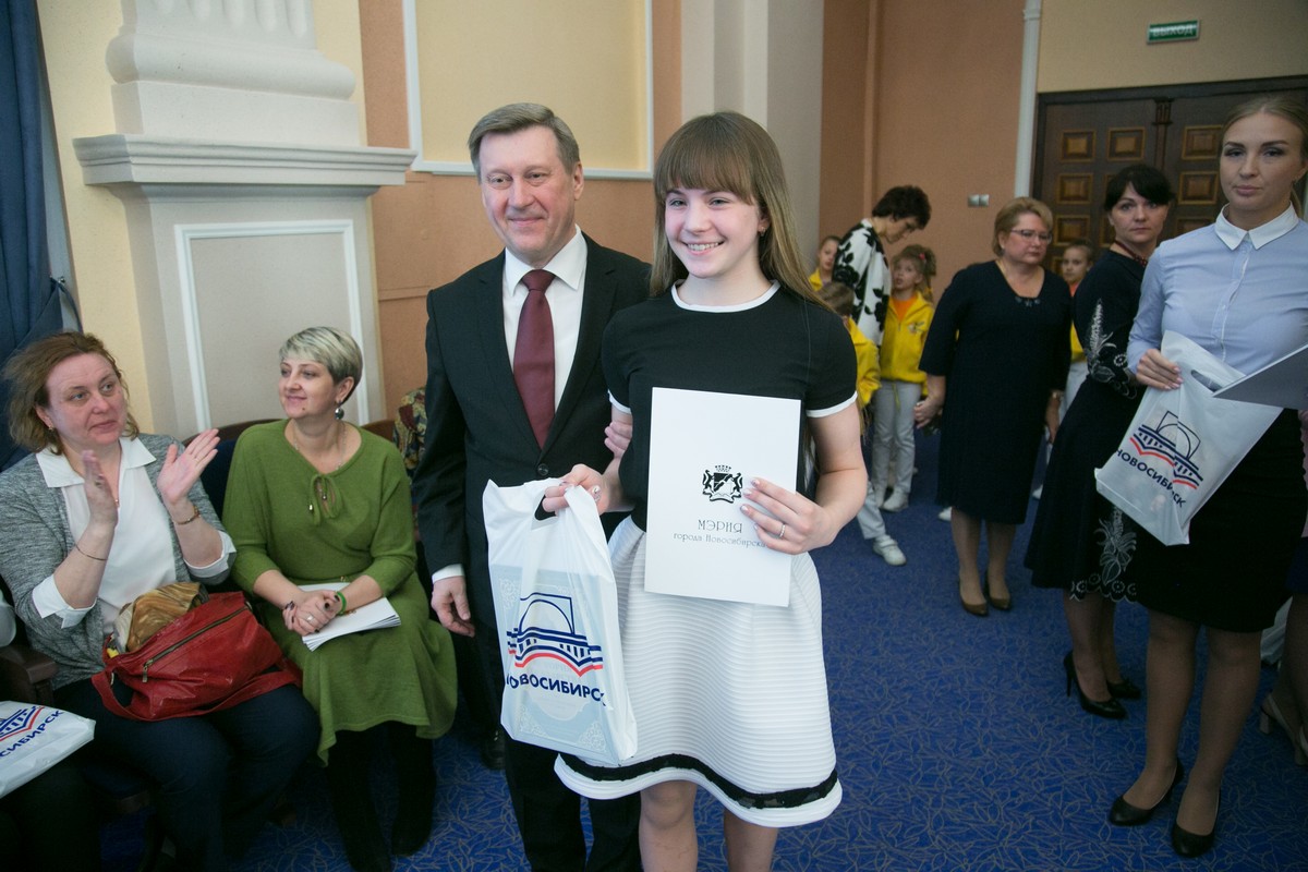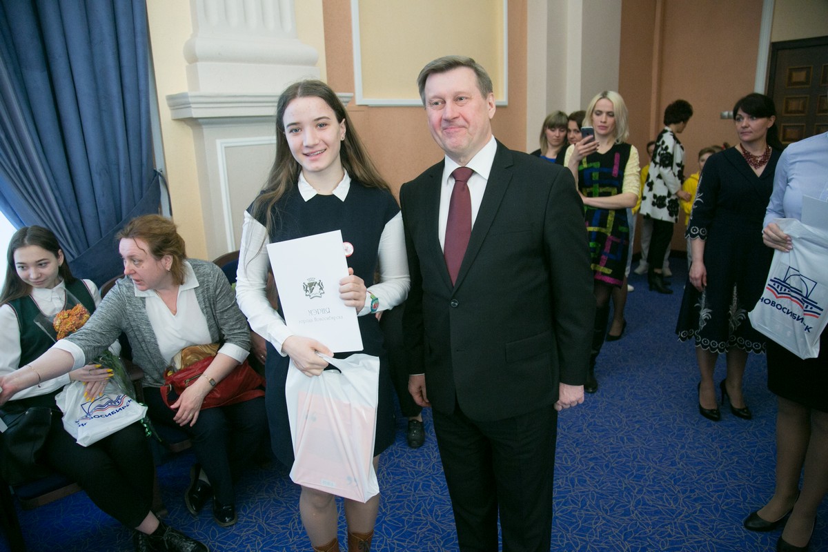 «Мы собрали здесь тех, кто показал себя в прошедшем году. Речь не об оценках и количестве баллов, полученных во время сдачи экзаменов. Речь о спорте, культуре и о том, как за рамками школы умеют проявлять себя ребята. В Новосибирске сосредоточен творческий потенциал людей интеллектуально сильных, грамотных, высокой культуры, больших знаний. Мы надеемся, что вы будете лучше нас, пойдете дальше и сделаете гораздо больше – для нашего родного города, области, страны, – обратился к участникам приёма Анатолий Евгеньевич. – Мы вас поздравляем! Вы сегодня самые главные! Желаю вам не останавливаться на достигнутом, всегда быть неравнодушными и восприимчивыми к самому новому».