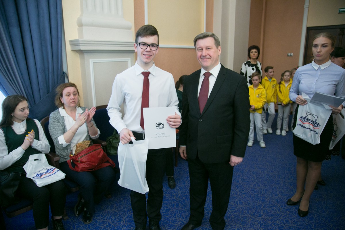 12 апреля мэр города Новосибирска Анатолий Евгеньевич Локоть провёл приём школьников – победителей и призёров международных и всероссийских фестивалей, конкурсов и соревнований по итогам 2018 года.
