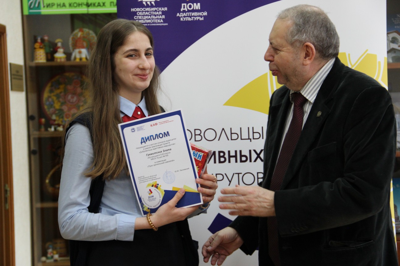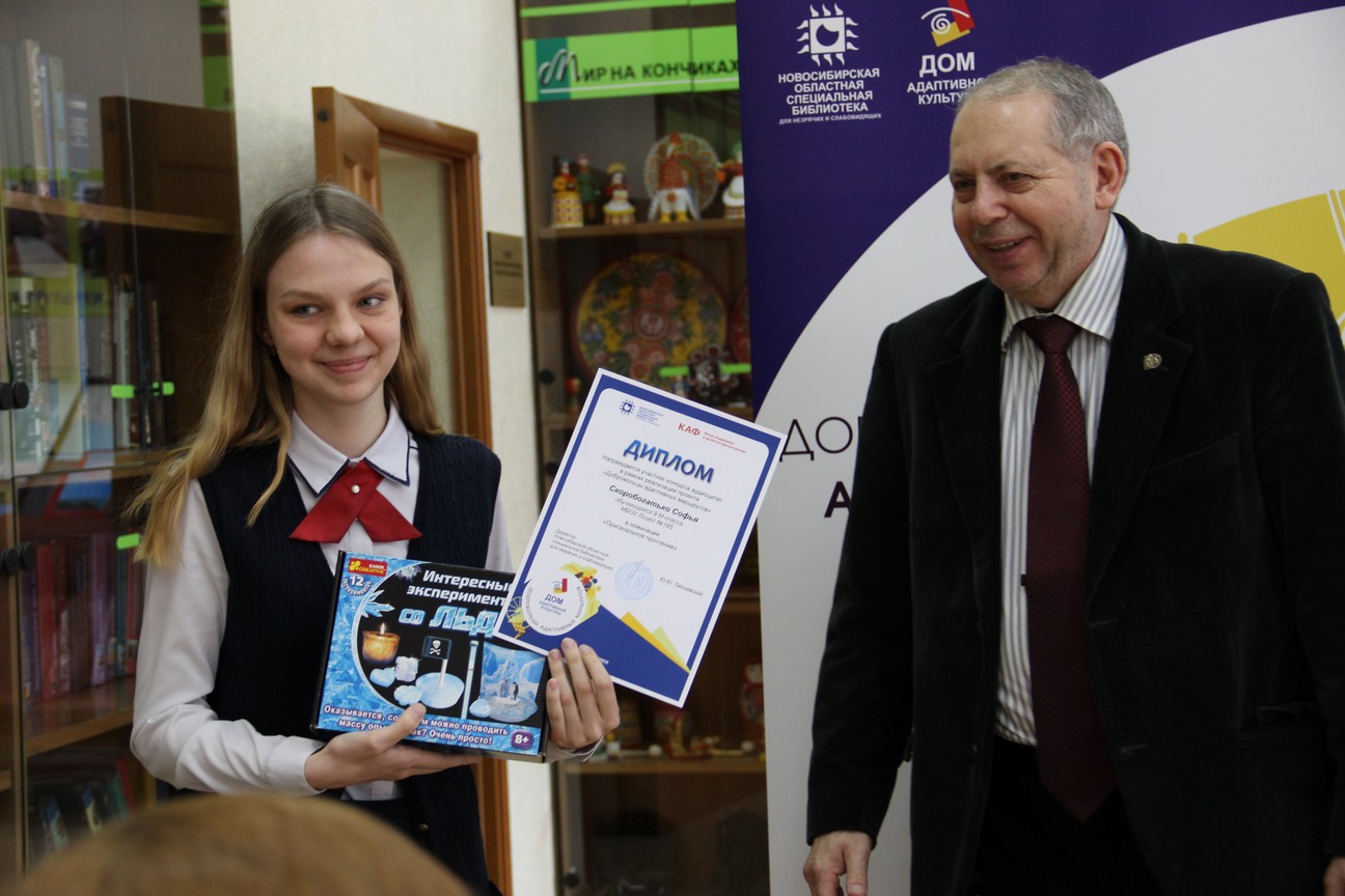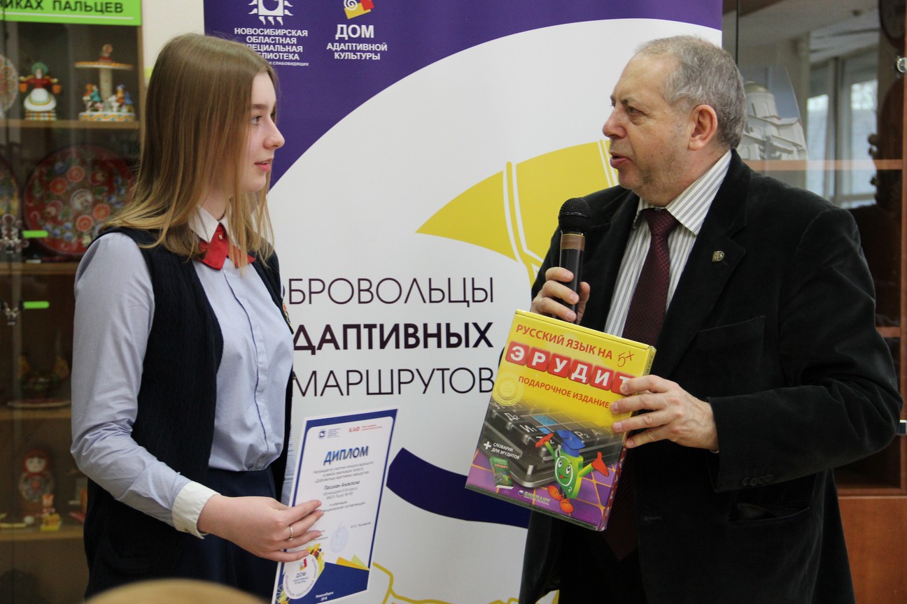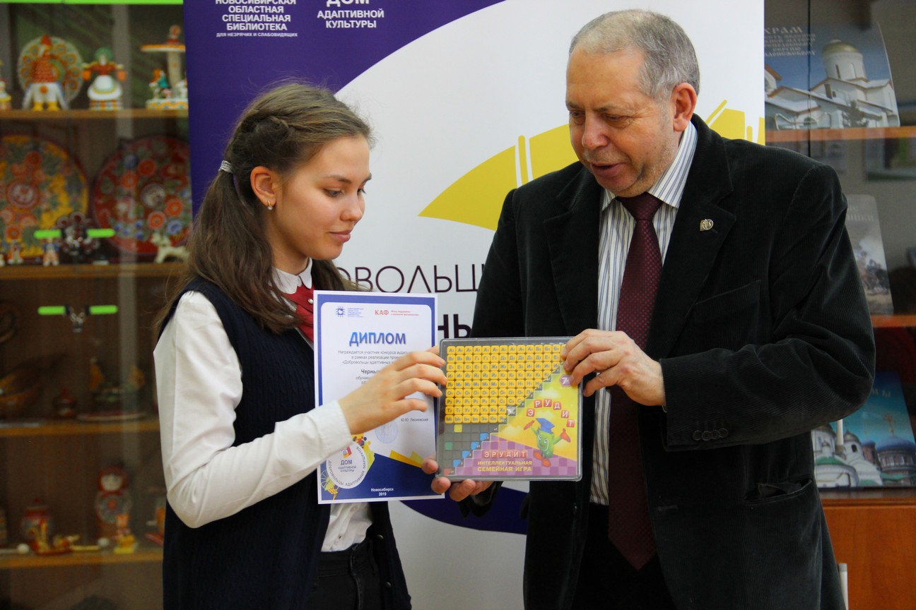 В рамках церемонии награждения директор Новосибирской областной специальной библиотеки для незрячих и слабовидящих Юрий Юрьевич Лесневский вручил дипломы и призы победителям по нескольким номинациям.
