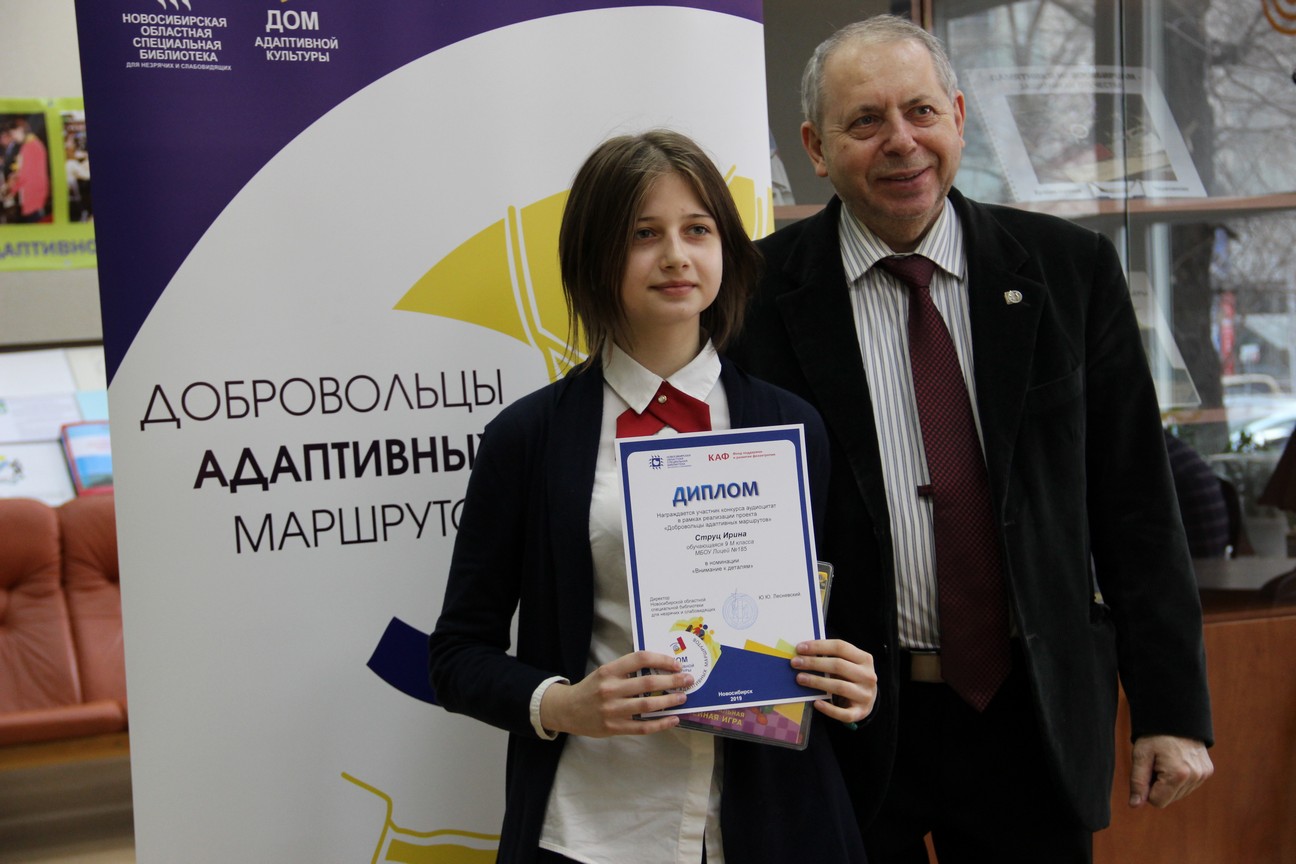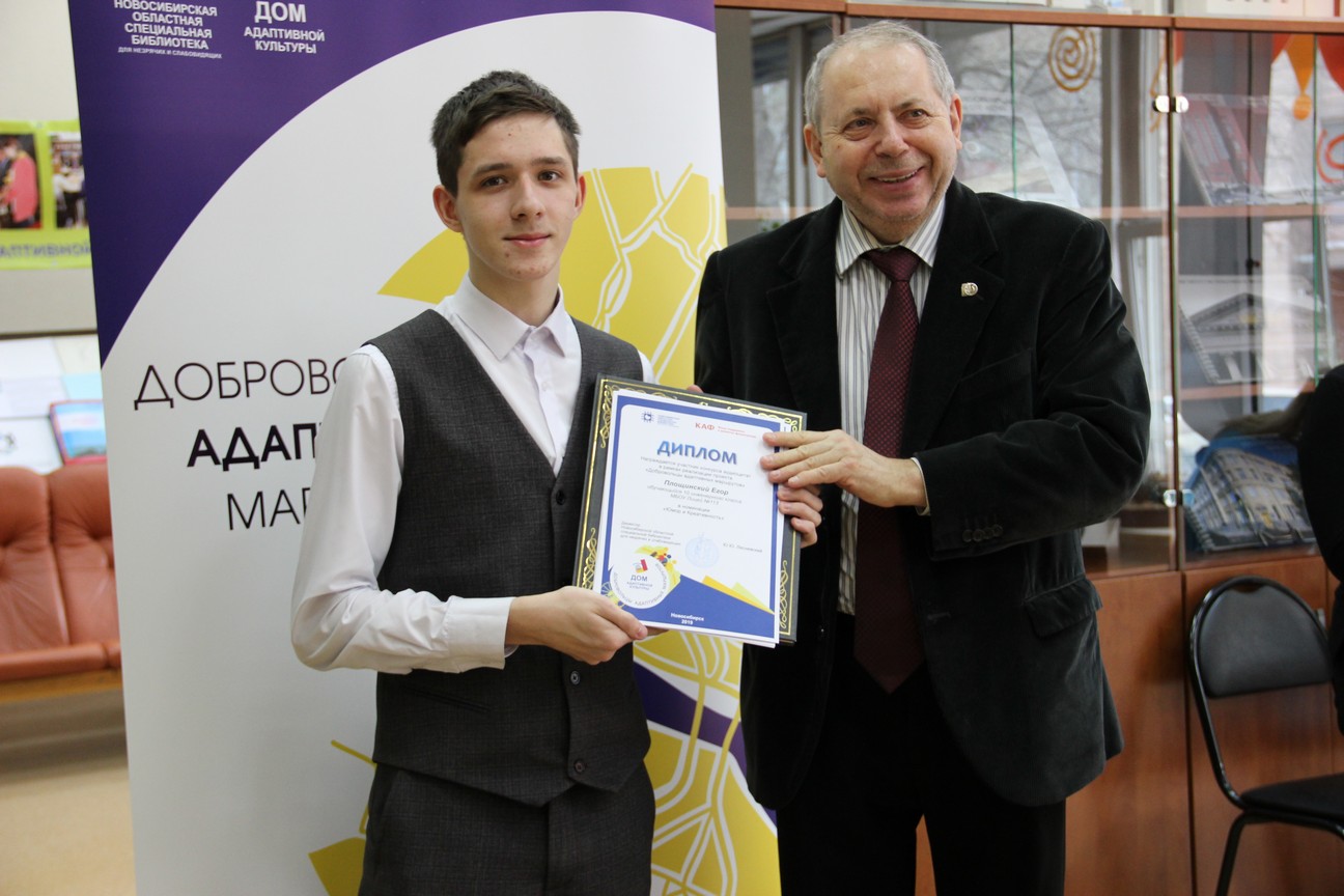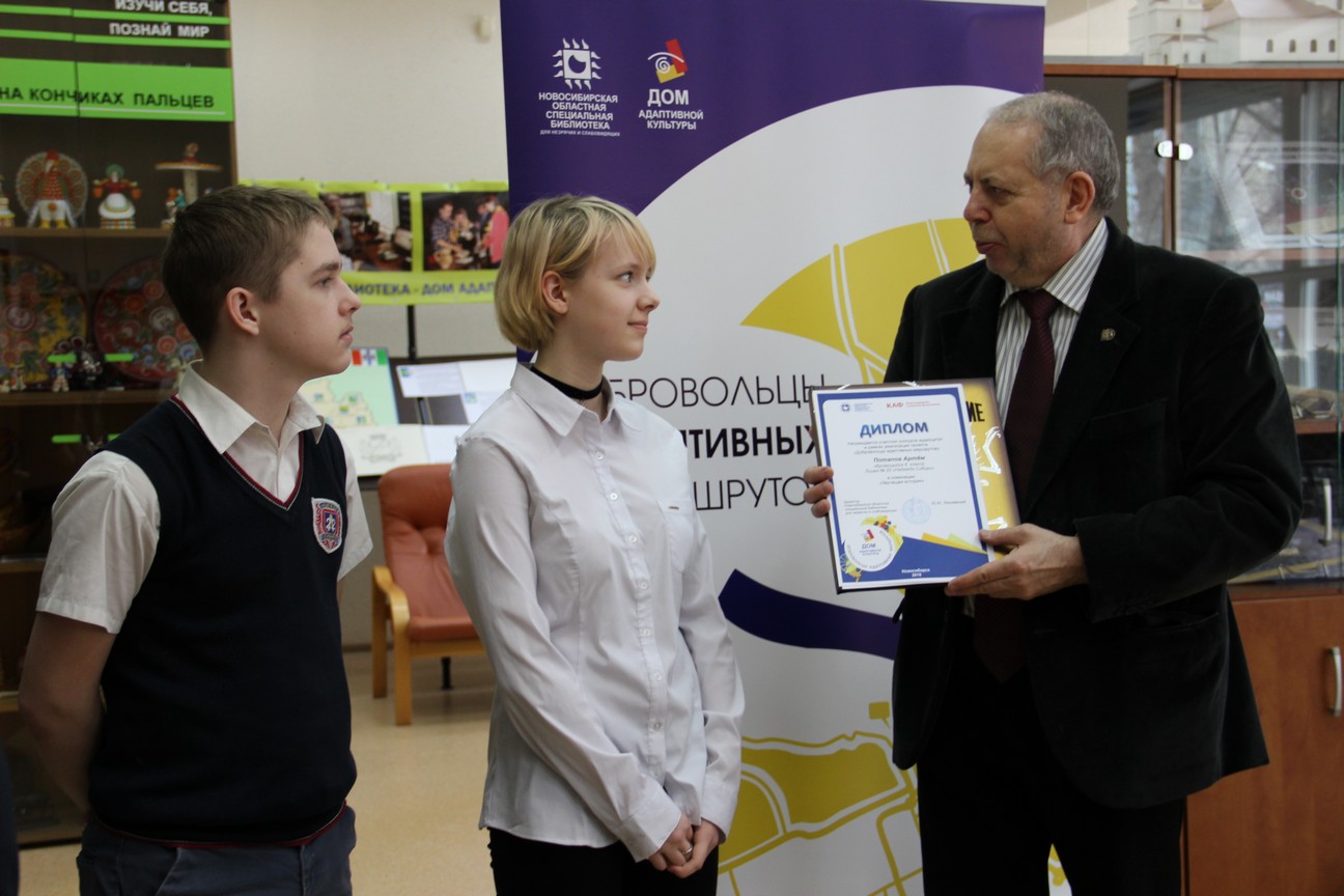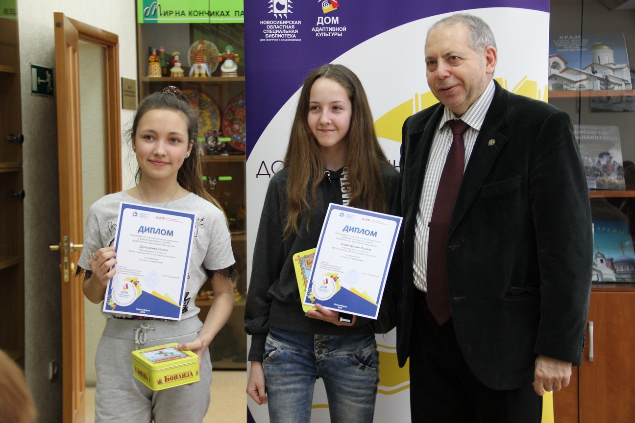 В рамках церемонии награждения директор Новосибирской областной специальной библиотеки для незрячих и слабовидящих Юрий Юрьевич Лесневский вручил дипломы и призы победителям по нескольким номинациям.