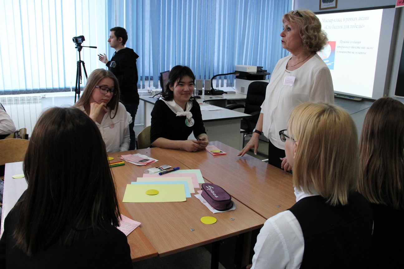 В рамках акции также состоялись психологический тренинг «Как преодолеть себя» и серия мастер-классов по подготовке к ЕГЭ: «Выражение своего мироощущения через создание собственного текста», «Компьютерная лингвистика: анализ текста», «Выражение авторской позиции в тексте: методы и приёмы», «Приёмы создания вторичного текста как залог успешности на экзамене», «Как слово наше отзовётся», «От слова к тексту».