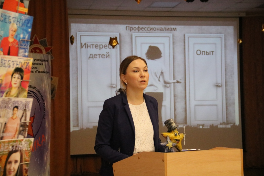 В рамках презентации опыта учреждения методист Щедренко Т.С. осветила современные тенденции взаимодействия участников образовательных отношений в учреждении дополнительного образования в выступлении по теме «От беби-бумеров до милениалов»: особенности поколений». Директор Центра внешкольной работы «Галактика» Агапова Н.П. рассказала о системном походе в развитии кадрового потенциала учреждения и назвала «Слагаемые успеха». Методист Вальщикова М.В. представила модель профессионального взаимодействия «Педагог + методист». О традициях и современных тенденциях в организации досуговой деятельности учащихся рассказала педагог-организатор Копылова А.К. Один из опытнейших педагогов Центра Овечкин А.В. поделился своими педагогическими приемами организации образовательной деятельности в радиотехнической лаборатории. Учащийся МБОУ СОШ №82 Волобуев Кирилл представил свои авторские электронные модели, выполненные под руководством педагога в радиотехнической лаборатории ЦВР «Галактика».
