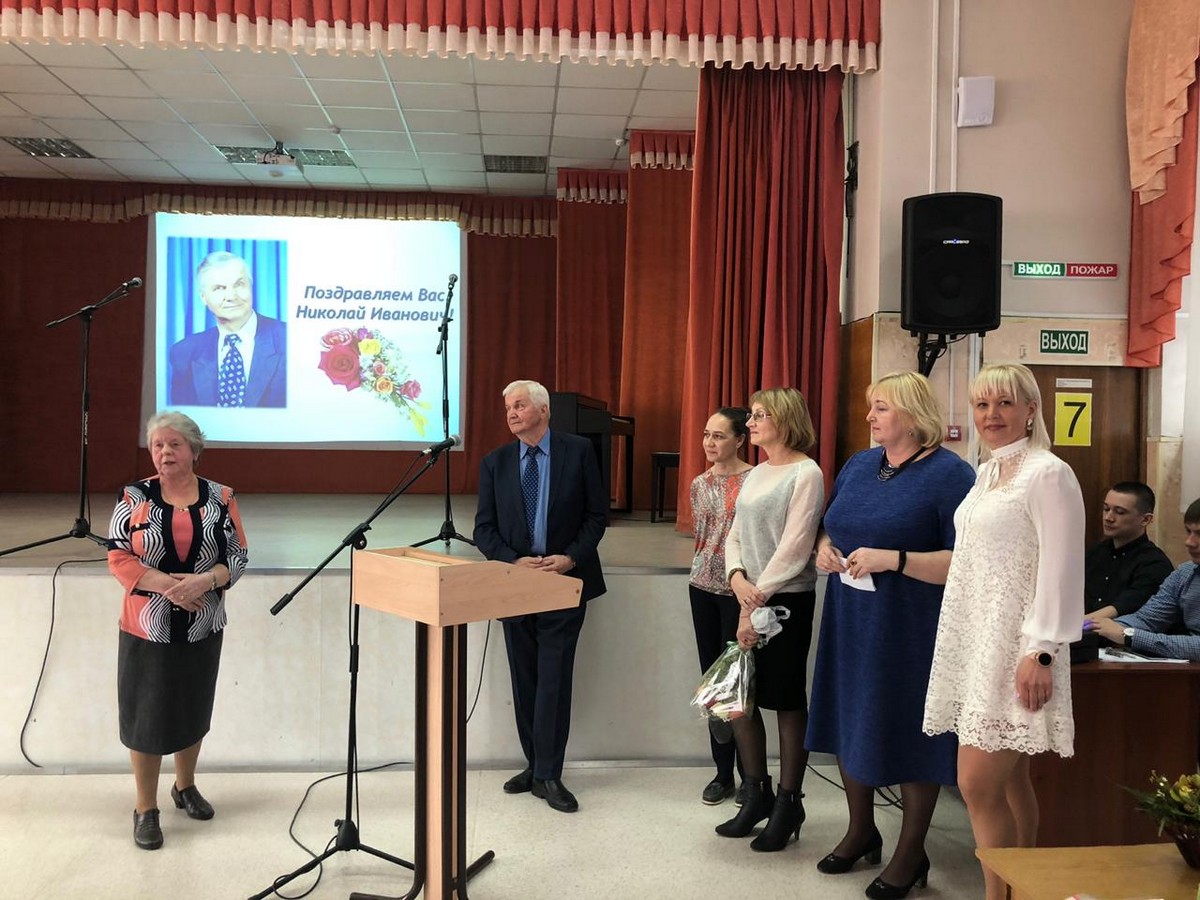 В этот день Николая Ивановича тепло и сердечно поздравили первый заместитель мэра города Новосибирска Захаров Геннадий Павлович, глава администрации Центрального округа Канунников Сергей Иванович, ректор Новосибирского государственного университета экономики и управления Новиков Александр Владимирович, Педагогический клуб Дома Учителя (президент Старцев Геннадий Алексеевич), коллектив руководителей образовательных организаций города Новосибирска и Центрального района во главе с сопредседателем Городского совета руководителей ОО Сопочкиным Сергеем Владимировичем. Трогательно прозвучали поздравления от коллег и друзей, родителей выпускников лицея, его учеников. Для всех нас – участников этого праздника, запомнилось поздравление ученика Николая Ивановича – нашего выдающегося земляка Толоконского Виктора Александровича, который в своем видеообращении выразил слова благодарности в адрес своего учителя, уроки которого он запомнил на всю жизнь. С любовью и огромным уважением Николая Ивановича поздравил его родной коллектив во главе с директором Некрасовой Людмилой Андреевной.