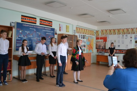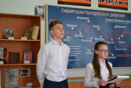Замечательно, что стремление ветеранов делиться с детьми своим опытом и воспоминаниями находит поддержку и среди самих ребят. Актив школьного музея подготовил для ветеранов мероприятие – театрализованную экскурсию по школьному музею, посвященную подвигу Воинов-Сибиряков.