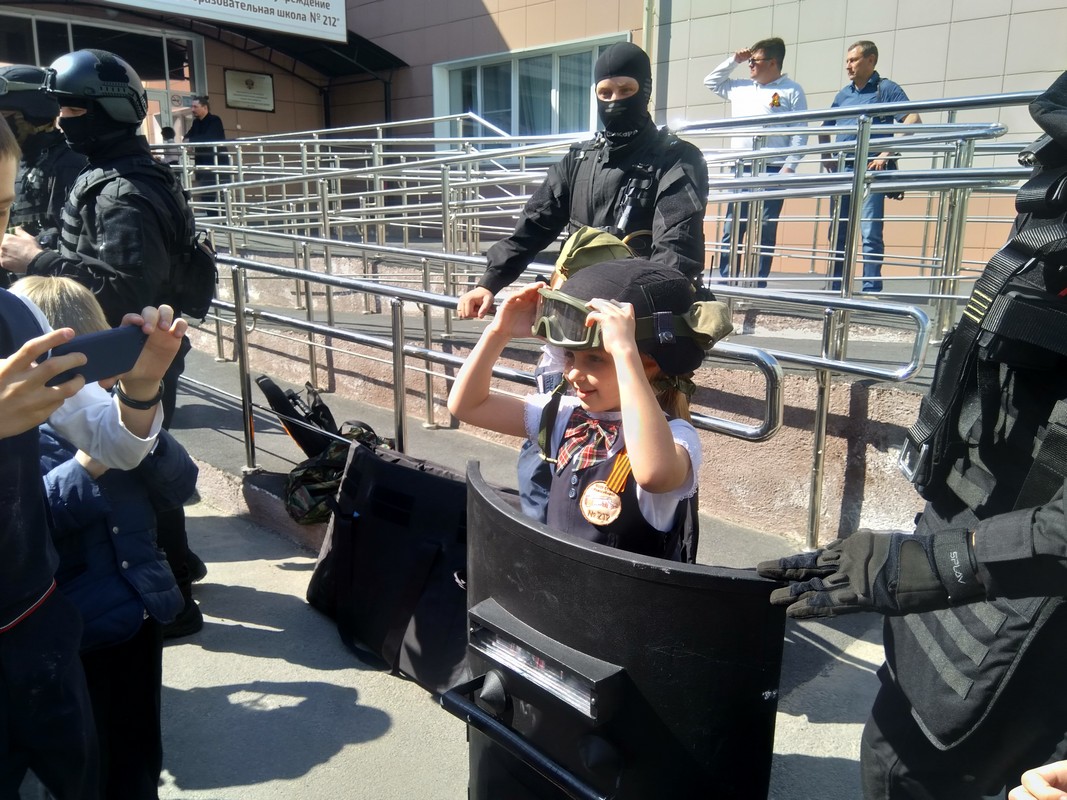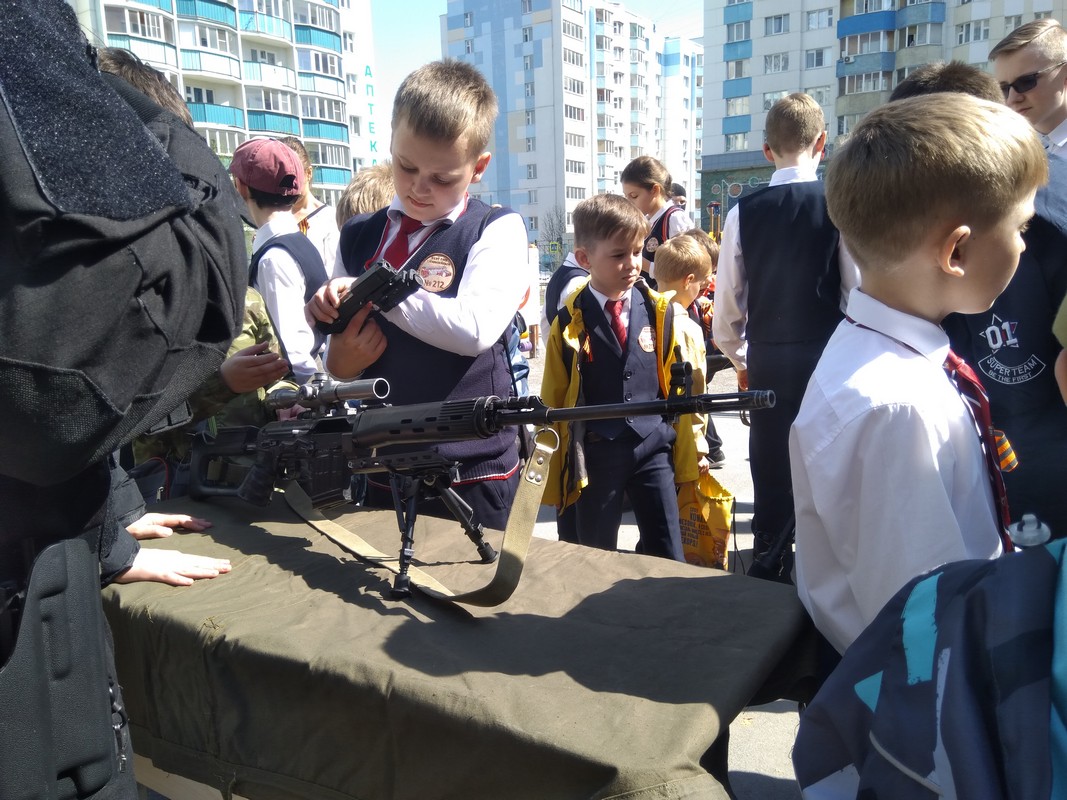 Ребята отправились в увлекательное путешествие по станциям, на которых сбивали танки, преодолевали «минное поле», бинтовали друг друга, пели военные песни, проходили полосу препятствий и «военную подготовку», собирали карту боевых событий. Затем празднование переместилось за пришкольную территорию. Здесь ребят ожидал отряд из общественной организации «Офицеры России», с участием сотрудников подразделения специального назначения Росгвардии и настоящая солдатская каша. Финалом нашего праздника стал большой фейерверк шаров.